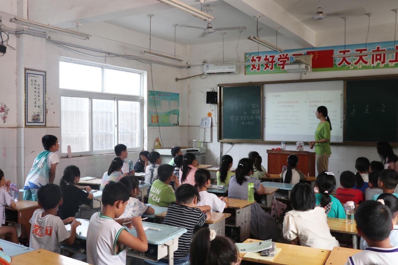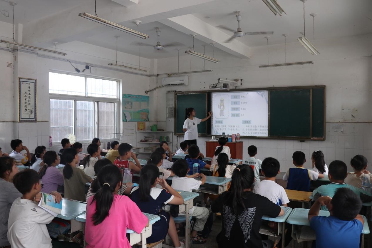 在支教活动第一天,志愿者们充分发挥自身专业优势,利用专业技能,采用喜闻乐见的方式,开展了一场内容丰富、别开生面的课堂活动。在教学互动中,实践队员通过近距离观察孩子们的行为表现,以留守儿童性格特点、年龄特点为出发点,在课堂中间穿插播放动画视频,进行游戏互动,在灵动风趣的画面与丰富多彩的游戏中向学生传播关爱与温暖,消除实践队员与孩子们之间的陌生感,拉近了彼此的距离。