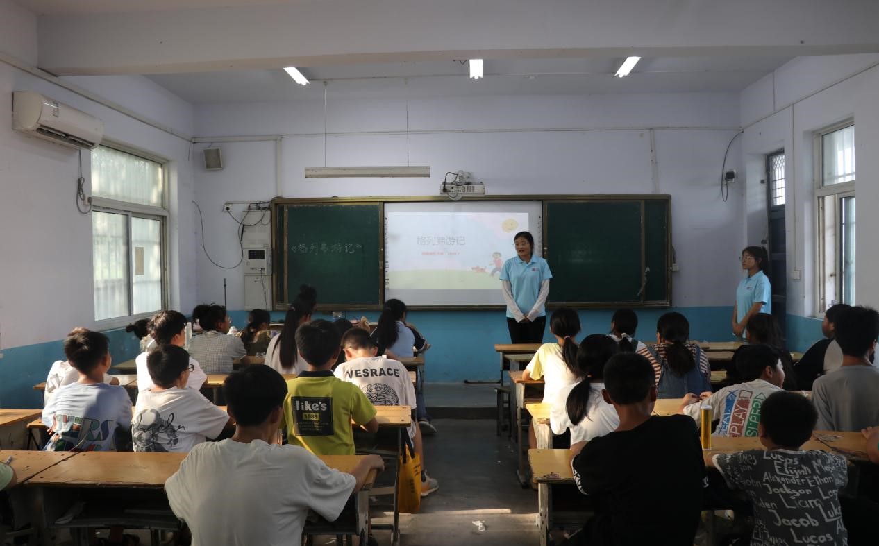 前期经过选拔、培训,志愿服务团部分队员前往延津县东屯镇后庄里中学联合当地教师开展破冰行动,为下一步扎实开展教学奠定基础。其中,戏剧教育党史小组通过介绍长征路线向同学们讲述长征精神,号召同学们不忘初心,启航新征程;读书小组针对初中必读书目《格列佛游记》对小升初同学进行讲解。课堂上,志愿者借助多媒体播放动画版《格列佛游记》使同学们兴趣高涨,又重点讲述格列佛在四个国家的经历,同学们边听故事边思考格列佛的人物形象、创作背景等问题并踊跃举手回答。课堂氛围融洽,师生活动性强,教授效果良好。