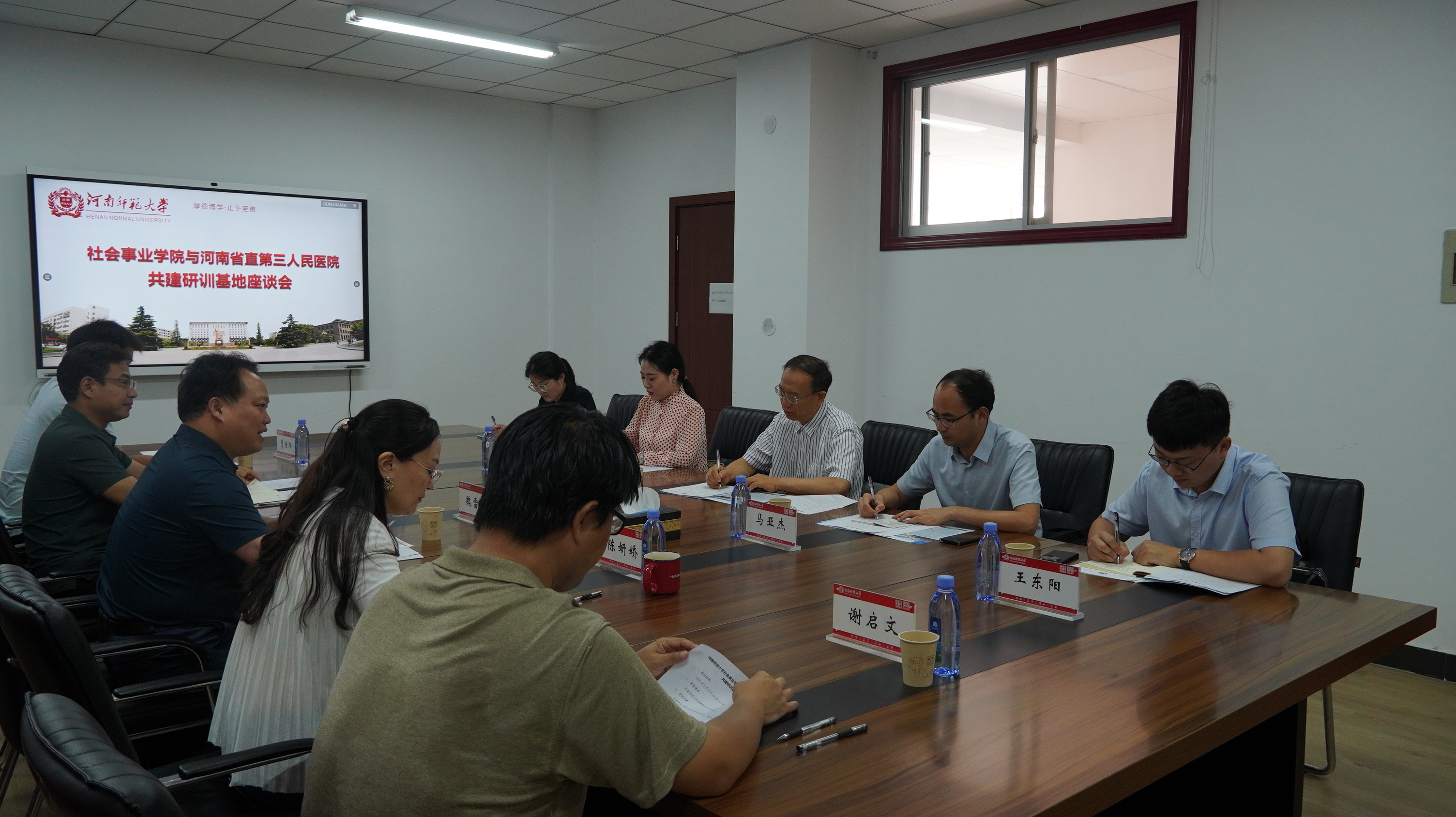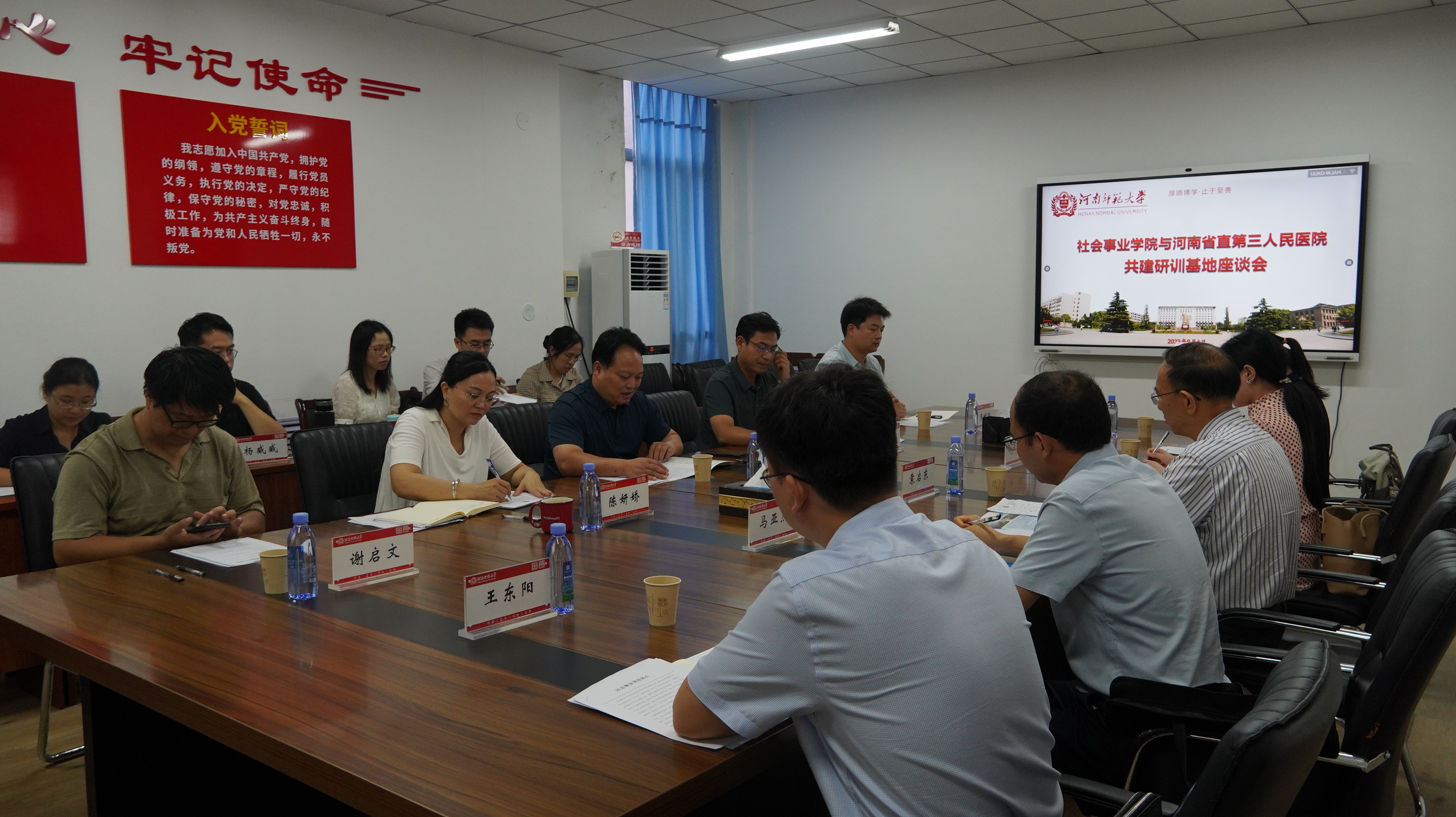 9月6日上午,社会事业学院与河南省直第三人民医院在崇智楼210会议室召开共建医教协同创新研训基地座谈会。河南省直第三人民医院业务院长袁启东,科教科主任马亚杰,护理部副主任王东阳、李盟,科教科干事朱瑾,社会事业学院院长魏雷东,社会事业学院副院长陈妍娇、海龙以及学院教师代表、2022级社会工作研究生参加会议。会议由副院长海龙主持。