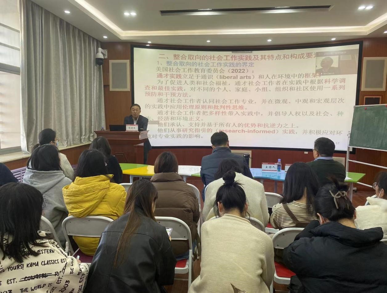 12月7日下午,中国社会工作教育协会副会长、中国青年政治学院社会工作系教授、博士生导师陈树强教授应社会事业学院邀请,在学院503会议室作题为“整合取向的社会工作实践”的学术讲座,本次讲座由张长伟老师主持,学院部分师生参与。