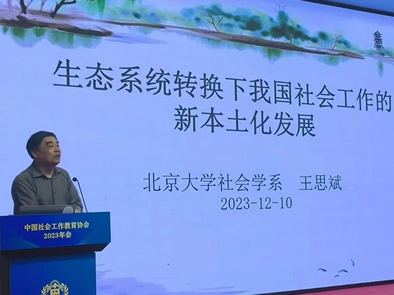 2023年12月10日上午10点,中国社会工作学会会长、中国社会工作教育协会名誉会长、北京大学社会学系教授王思斌应邀做客社会事业与社会建设大讲堂,于思政平台进行学术讲座,开展了题为“生态系统转换下我国社会工作的新本土化发展”的专题讲座。讲座由张长伟教授主持,学院二百余位师生参加。