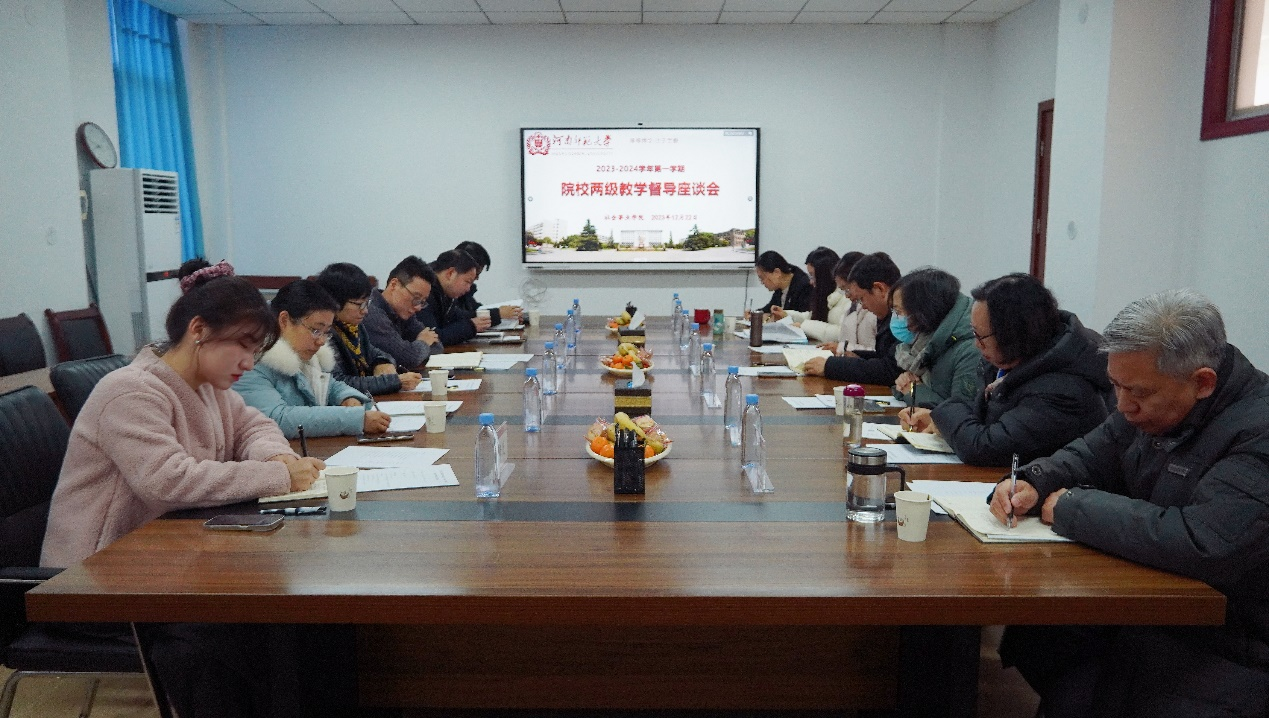 12月22日上午,我院于崇智楼210会议室召开院校两级教学督导座谈会,教务处副处长姜玉钦、校级教学督导谢彩霞、王海琴、李玉芳、冯小莉,学院党委副书记林安春、学院副院长陈妍娇以及学院校级督导、同行督导和教学秘书等参加。会议由陈妍娇主持。