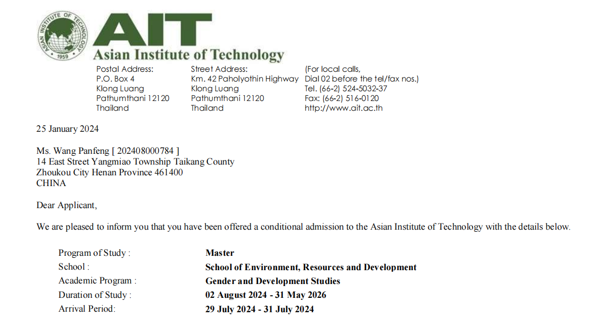 社会事业学院积极开展有组织国际留学申报活动,经过前期系列申报考核,本年度学院9名本科生分别获得国家留学基金委员会(CSC)国外合作项目(泰国亚洲理工学院研究生项目)性别与发展研究、可持续发展研究、工商管理三个专业的硕士录取通知书及国家留学基金委奖学金的申报机会。