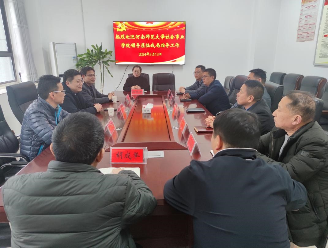 为拓展实践育人平台、深化校地交流合作,3月13日,社会事业学院副院长海龙、宋树伟,劳动与社会保障系主任薛君一行赴延津县开展校地实习基地合作共建活动。延津县人力资源与社会保障局局长杨家保及局全体领导班子成员参加了座谈会。
