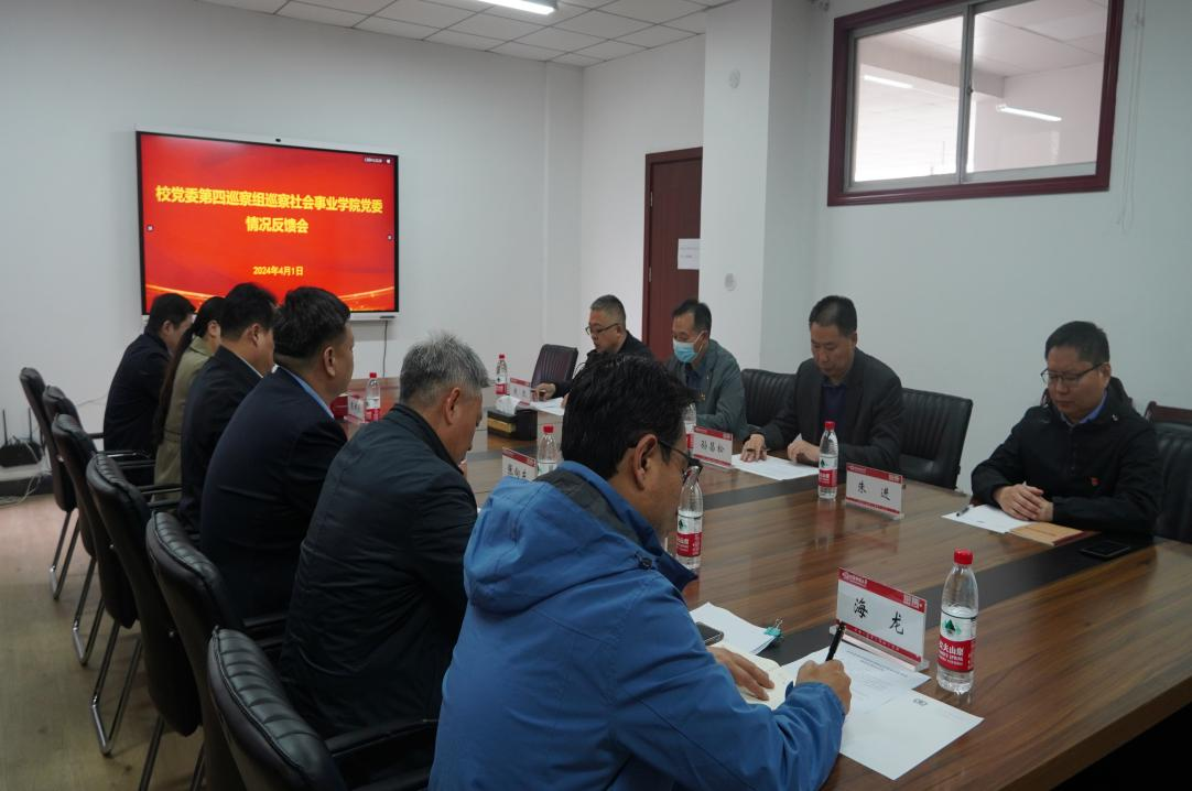 按照校党委巡察工作安排,4月1日下午,校党委第四巡察组向社会事业学院反馈巡察情况。巡察组成员、社会事业学院领导班子及全体教职工参加会议。会议由社会事业学院院长魏雷东主持。