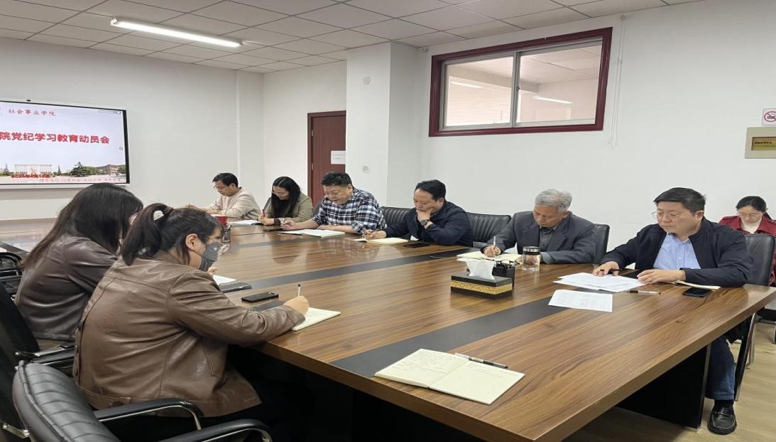 会上张向东领学了习近平总书记关于开展党纪学习教育的重要讲话和重要指示精神,传达了学校党纪教育动员会精神,并宣读了学校《关于在全校党员中开展党纪学习教育的工作方案》和社会事业学院党纪学习教育领导小组成员名单。
