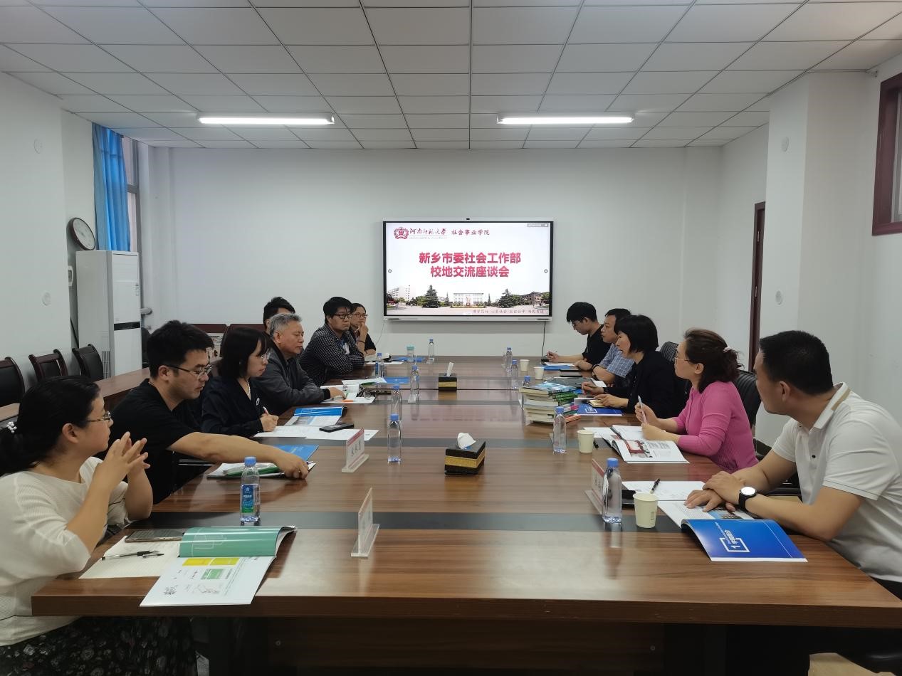 5月10日上午,学院与新乡市委社会工作部联合开展校地交流座谈会。新乡市委社会工作部副部长薛峰、科长石德学一行五人、学院领导、教师代表参加此次座谈会。会议由学院党委副书记林安春主持。