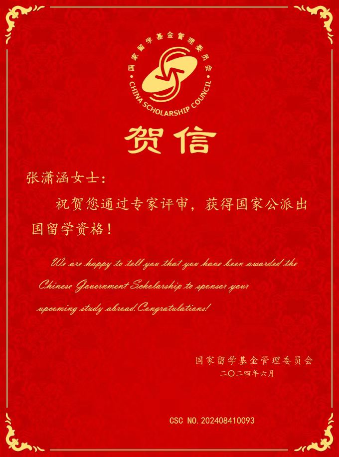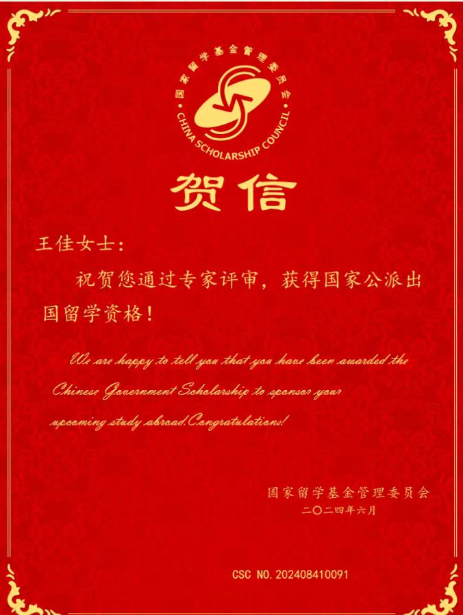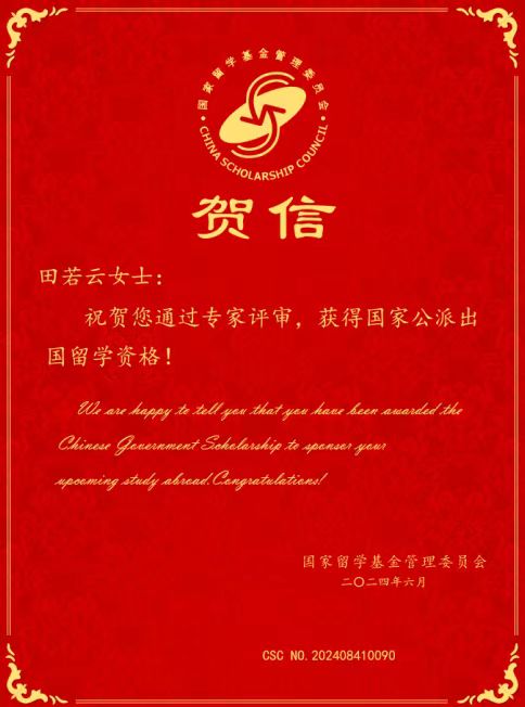 近日,国家留学基金管理委员会向社会事业学院应届本科毕业生发来贺信,祝贺他们通过专家评审,获得国家公派出国留学资格。经过学院和指导教师宋长慧的努力,社会事业学院本年度推荐的4名应届毕业生陈兰、田若云、张潇涵、王佳成功申请到国家留学基金委(CSC)公派全额奖学金,将赴亚洲理工学院(AIT)留学攻读工商管理、性别与发展研究、可持续发展研究等专业的硕士学位。国家留学基金委将提供研究生留学期间的学费、生活费及一次往返国际旅费。