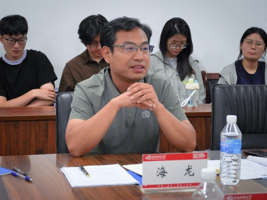 海龙对实习工作和本次总结交流会进行总结,一是对省直三院的有关领导及老师们的辛勤付出表示感谢,并对实习生在实习过程中的努力和成绩给予充分表扬和肯定。他提出,本次赴省直三院实习是一次“探索之行”,探索医务社工人才培养新模式、新路径;是一次“学习之行”,学习和巩固专业实践和科研创新,更是一次“共建之行”,共建医校协同培养医教协同创新研训基地。今日医校双方“胜利会师”,标志着医教协同创新研训基地“黄埔一期”9名医务社工学员实习圆满结束;二是提出下半年将计划选派13名医务社工硕士研究生前往省直三院开展为期1年的专业实习实践,通过优化课程设置,延长实习时长等举措,进一步完善医校合作培养医务社工模式,培养更多具有创新精神和实践能力的医务社会工作拔尖人才。