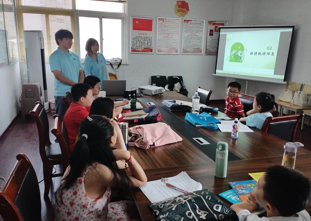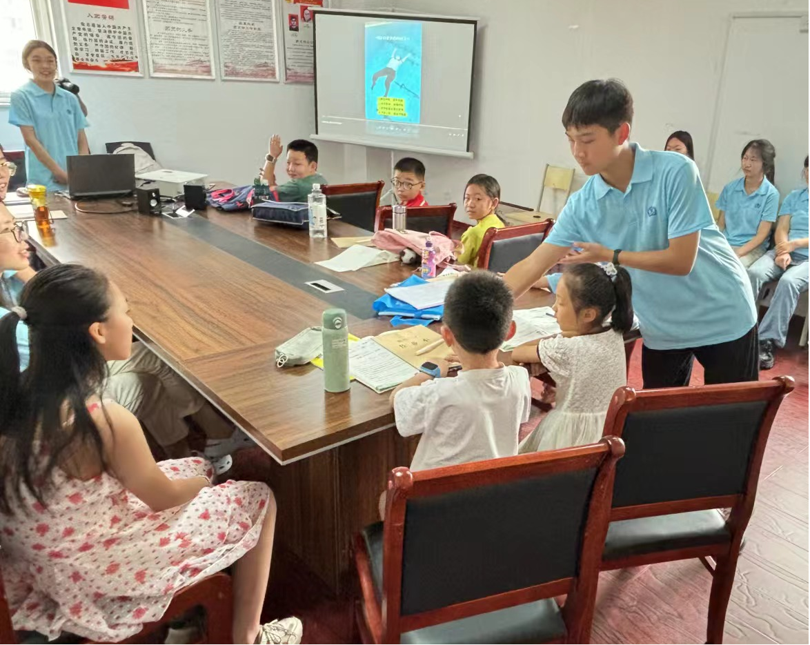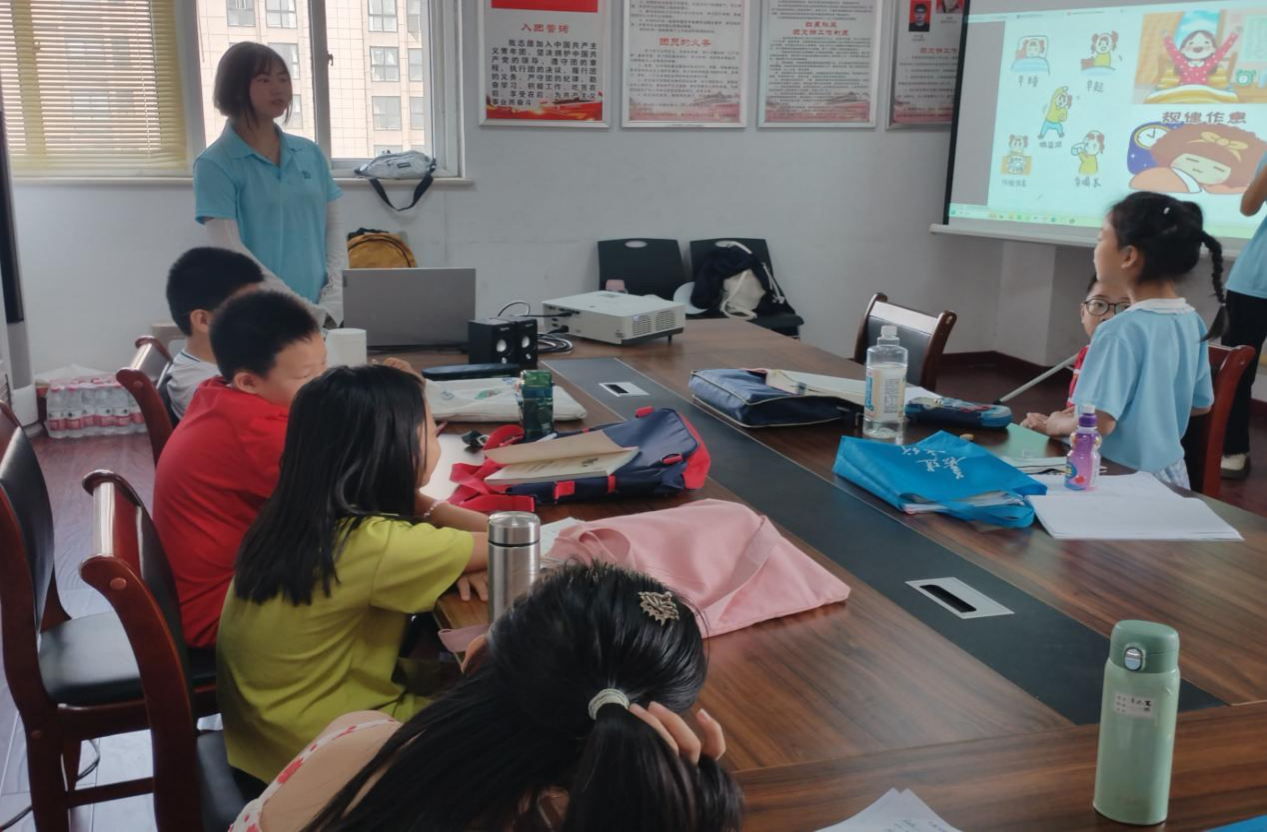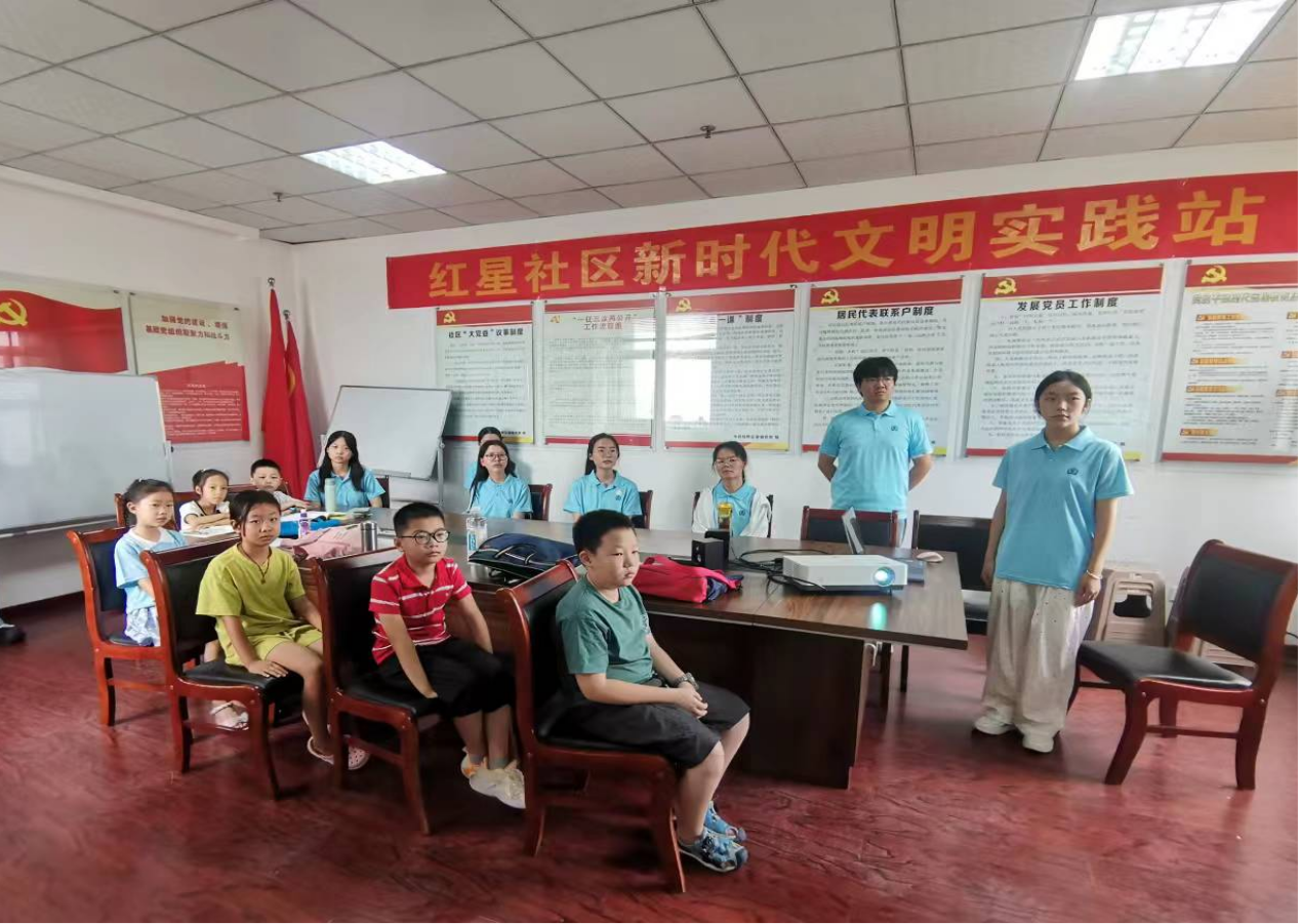 “老师,您可以帮我看一下这个题吗?”一个三年级小男孩开心的问道。为引导社区的孩子们养成良好的学习习惯,提升学习效率。7月14日,社会事业学院“让科普点亮社区”--大学生科普慧社区文明实践志愿服务团赴红星社区组织开展暖心支教实践活动。