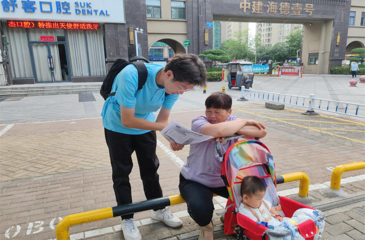 “孩子们,天这么热,你们辛苦了,快来坐下休息一下”,社区王大爷招手说道。为推动学校小课堂与社会大课堂有效结合,2024年7月10日,社会事业学院“让科普点亮社区”大学生科普慧社区文明实践志愿服务团赴红星社区开展大学生社区志愿服务活动。
