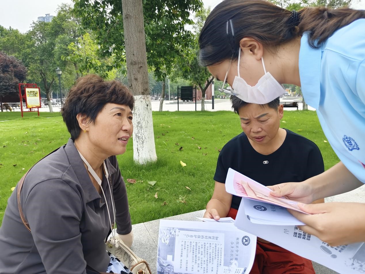 图5宣讲团成员向和谐公园散步的阿姨进行禁毒防艾宣讲