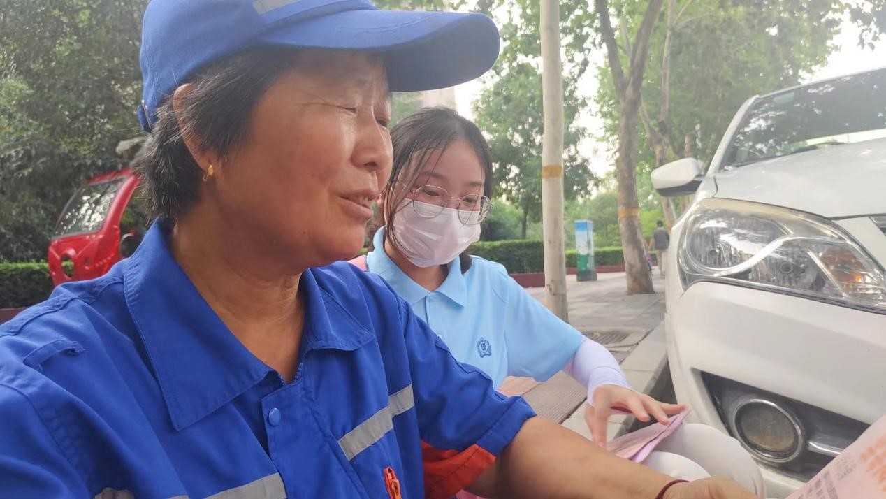 图4宣讲团成员向清洁工阿姨进行禁毒防艾宣讲