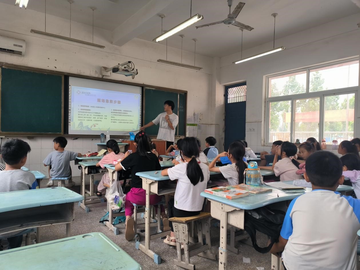 安全是乡村振兴的基石,校园安全更关乎背后的每个家庭,安全教育是学生未来发展的重要保障。为普及安全知识,提高学生自我保护意识,7月10日,社会事业学院“盛夏新征程,支教筑梦行”——困境儿童社会工作关爱守护志愿服务团为新乡市延津县东屯镇郝光屯小学的小朋友们带来了一堂精彩纷呈、形象生动的安全知识教育课。