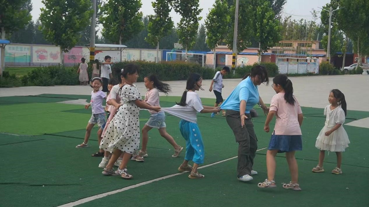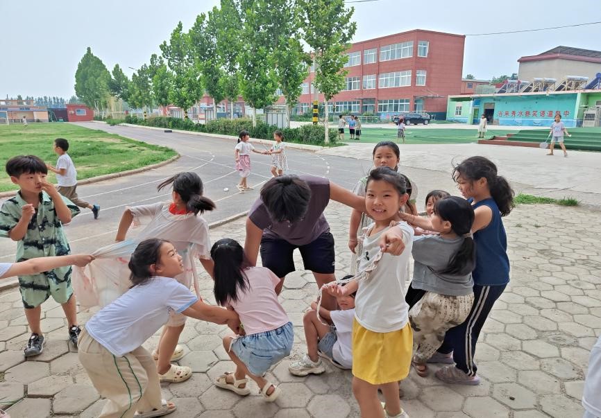 为增强孩子们的团队协作能力,进一步培养抗逆力,7月13日,社会事业学院“盛夏新征程,支教助梦行”困境儿童社会工作关爱守护志愿服务团为新乡市延津县郝光屯小学的小朋友们上了一堂别开生面的活动课。