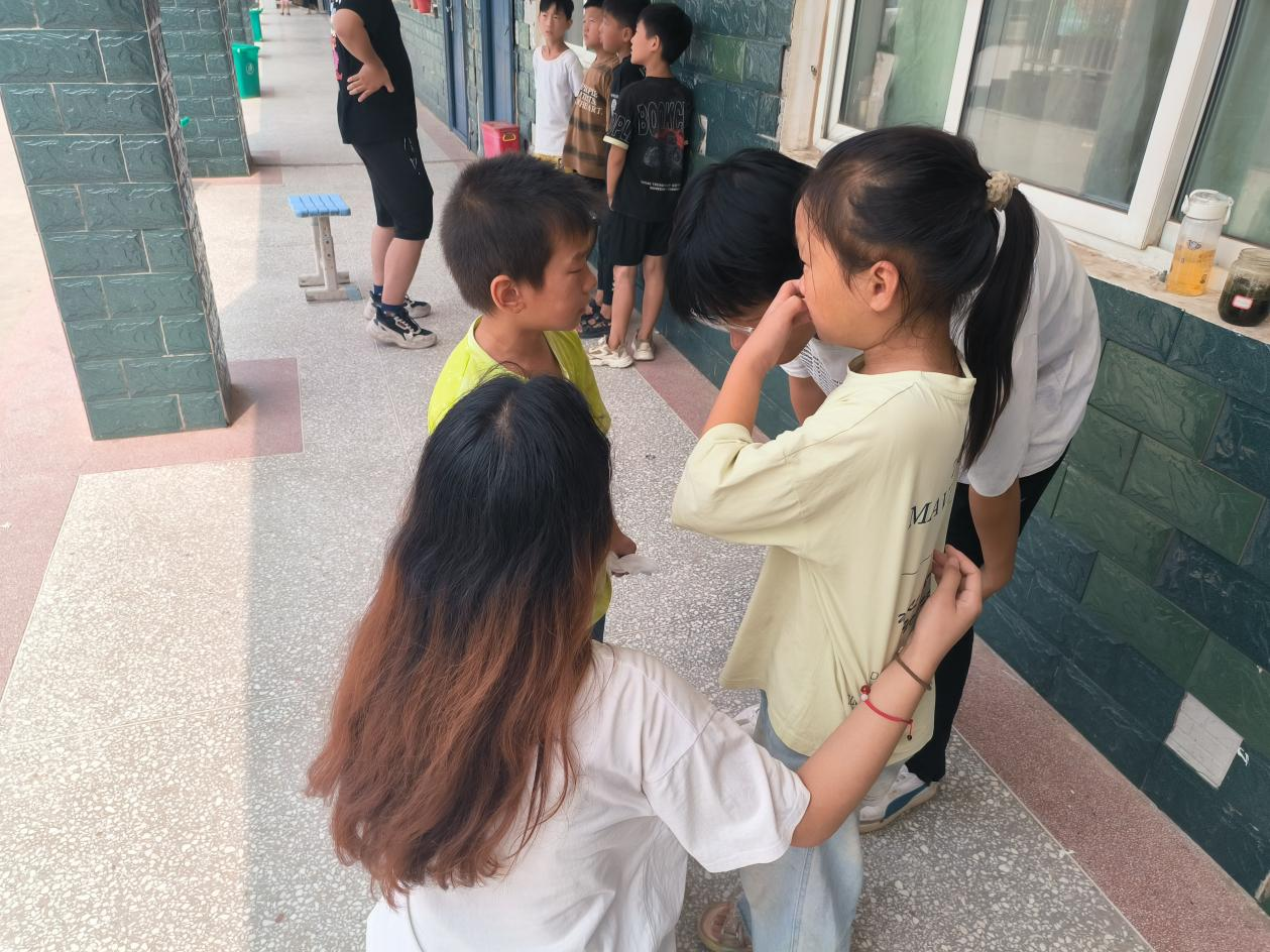 抵达当天下午,团队的心理抗逆力小组便迅速行动起来,在与孩子们建立起初步的信任关系后,运用所学专业知识与方法,通过“你的名字”“埋葬我不能”“优点大轰炸”等小游戏,引导孩子们正确认识自我,在互动中实现心理辅导和成长引导。“老师,你们会在这里待很久吗?我们喜欢和你一起玩!”孩子们从最开始的羞涩到自信,再到对实践队员的恋恋不舍,让这个夏天变得多彩艳丽起来。