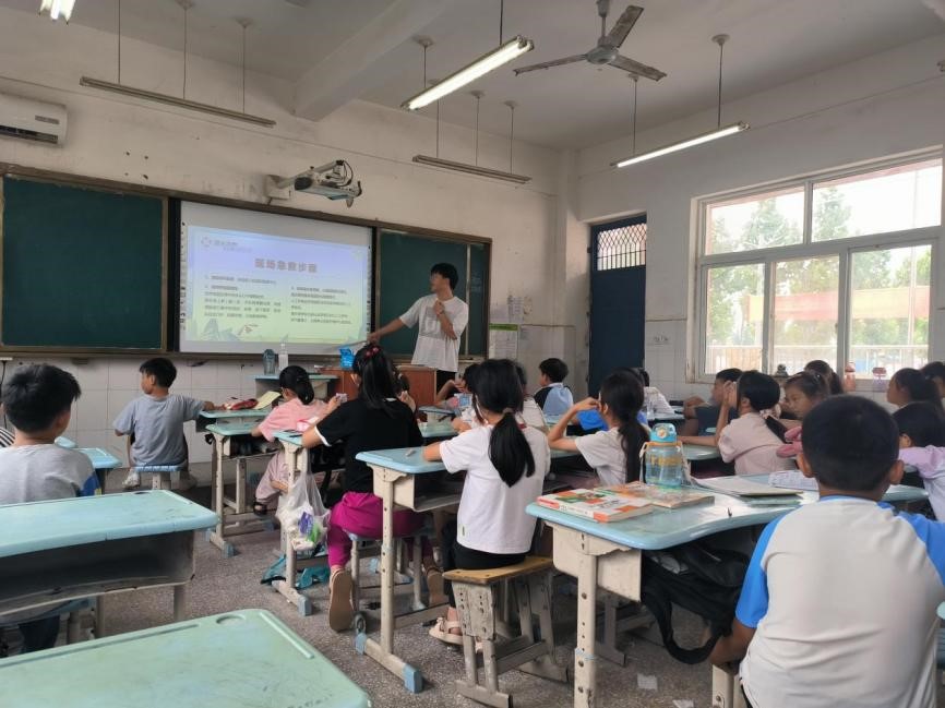 实践队员将目光聚焦在防溺水教育和网络安全教育两大关键领域。在防溺水安全教育课堂上,实践队员从“了解水域环境”“掌握自救技能”“学习互救方法”等方面向孩子们传授安全知识,通过生动的演示和实际案例,让孩子们深刻认识到溺水的严重危害。实践队员们还进一步扩展教学,传授游泳技巧,促使他们自觉增强安全意识,熟练掌握自救与互助的技能。
