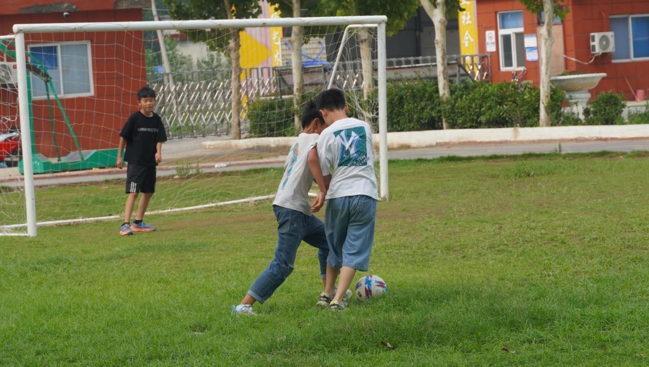 运动会设置了两人三足、拔河比赛、一圈到底等多个既富有挑战性又充满乐趣的比赛项目,不仅考验身体素质,更能锻炼团队默契。随着裁判的一声哨响,参与两人三足比赛的孩子迅速行动起来,肩并肩、脚绑脚,瞬间化身一对对默契十足的小搭档。足球场上,一道优美的弧线划出,孩子们灵巧地带球过人,配合极为默契。拔河比赛现场,气氛紧张而热烈,一股无形的力量将仿佛所有人的心紧紧相连,绳子中央的红绸带在两队之间往复摇曳,成为全场焦点,随着哨声的再一次响起,男生队赢了,现场爆发出欢呼声和掌声,比赛结束了。整个过程中孩子们所展现出的超凡毅力和团队合作意识,给实践队员们留下了深刻印象。