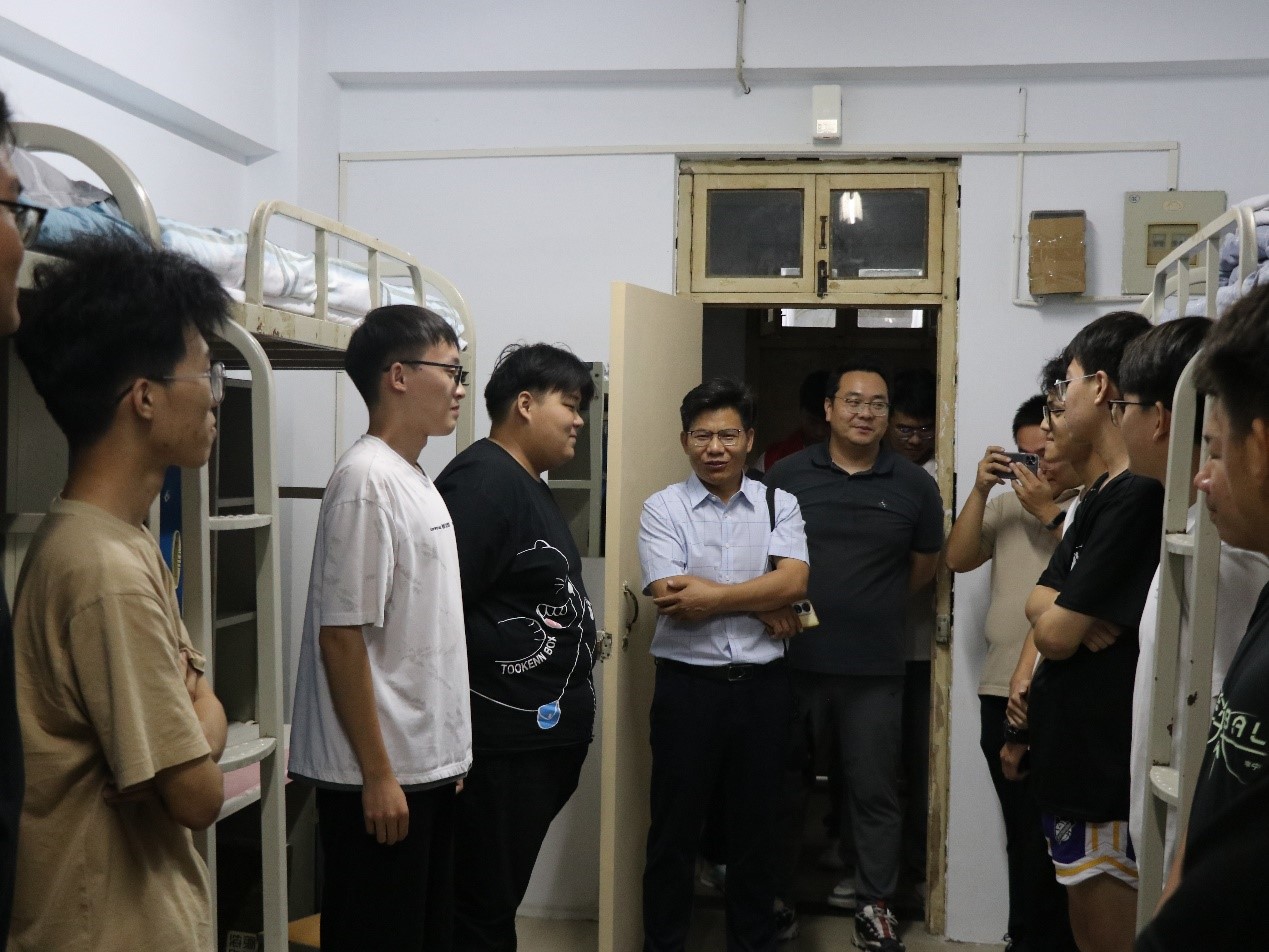 在慰问过程中,院长王君健、党委副书记林安春实地检查新生宿舍各项设施情况,确保新生们能够在一个舒适、安全的环境中度过他们的大学时光。学院领导和辅导员亲切地与新生们交流,询问他们的入学感受、生活需要、对大学新环境的适应状况以及对学院的建议和期望。王君健认真解决新生提出的问题,针对新生所面临的困难提供切实有用的建议和帮助,他表示,大一新生要在及时熟悉学校学习、生活环境,做好个人生理、心理状态调整,养成规律作息,为军训的军训以及整个大学生活做好充分准备。