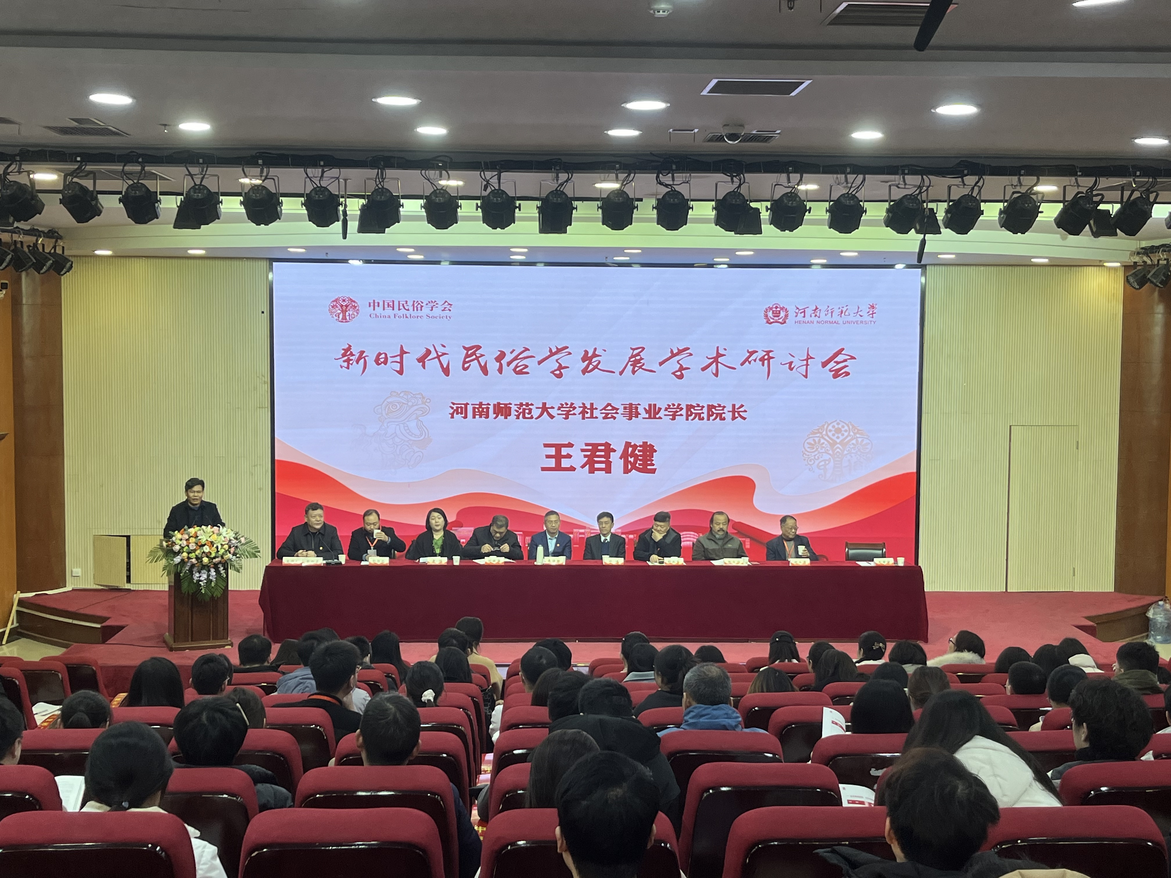 叶涛发表讲话,他对河南省在民俗学研究领域的优秀传统以及我校在民俗学学科建设上的贡献表示赞扬。他指出在新时代民俗学学者要深入探索、创新思考、勇于实践,为国家建设、经济转型和文化发展做出伟大贡献。彭恒礼发表讲话,他回顾了河南民俗学发展的脉络,并指出民俗学发展中存在的问题与挑战。他强调,民俗学的发展需要依托高校和学位点持续培养优秀学术人才,推动学科繁荣发展。社会事业学院院长王君健介绍了学院在学科建设、科学研究、社会服务等方面的基本情况。
