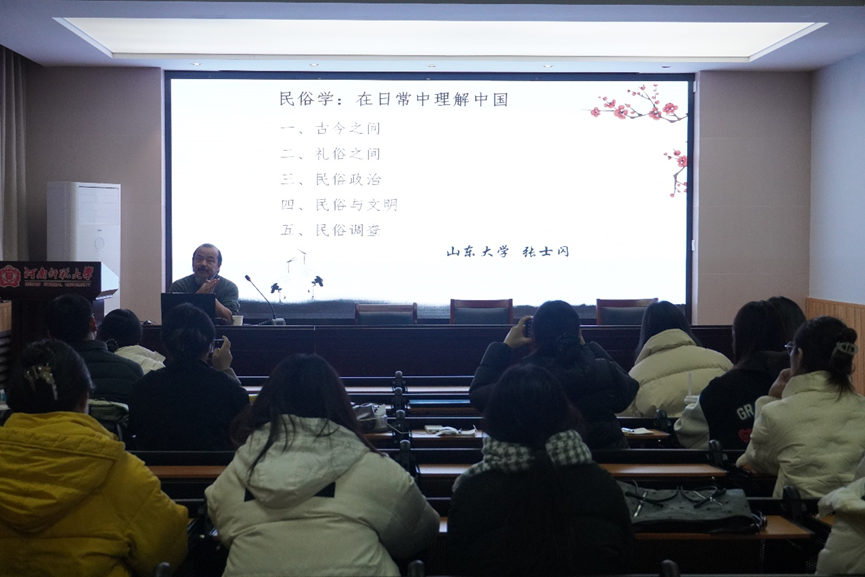 12月7日下午,应社会事业学院邀请,山东大学张士闪教授做客社会事业与社会建设大讲堂,于崇智楼114会议室作题为“民俗学:在日常生活中理解中国”的讲座。学院教师代表、部分本科生及研究生参加。讲座由学院教师郝光耀主持。