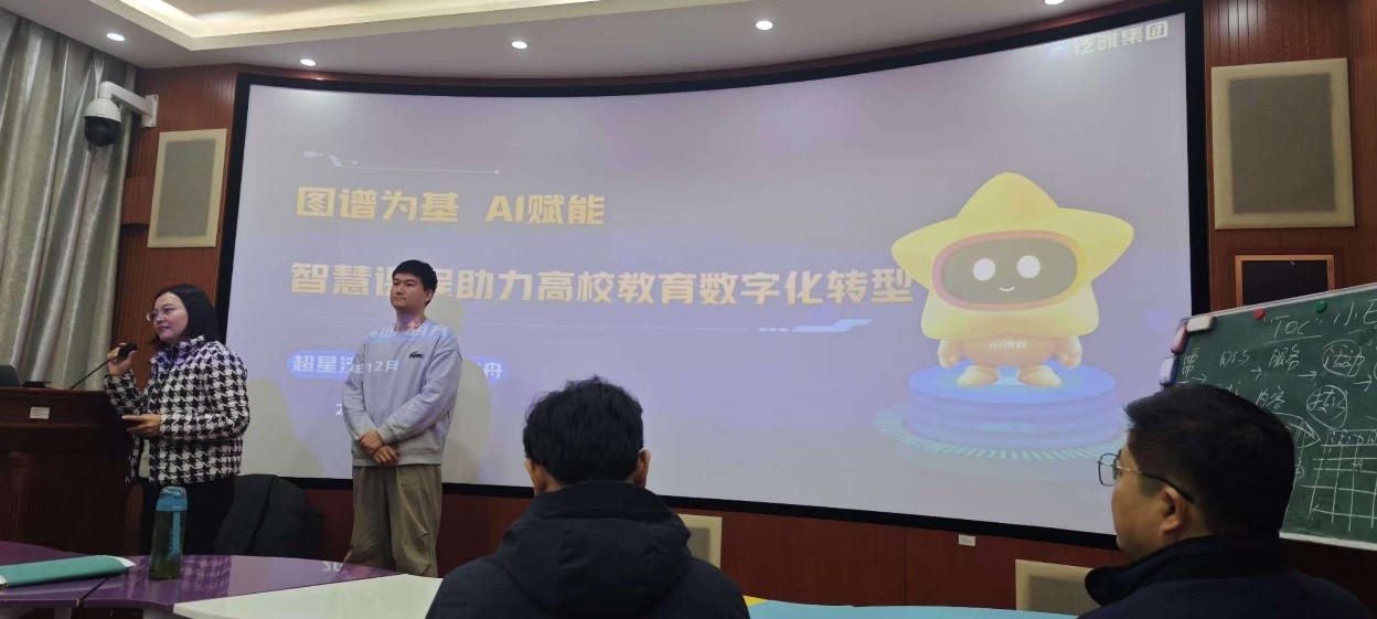 12月10日下午, 应社会事业学院邀请,超星公司高级讲师胡方舟于崇智楼503会议室作题“知识图谱与AI工具:赋能教学改革,塑造智能化学习环境”的技能培训讲座。学院全体教师参加讲座。社会事业学院副院长陈妍娇主持。