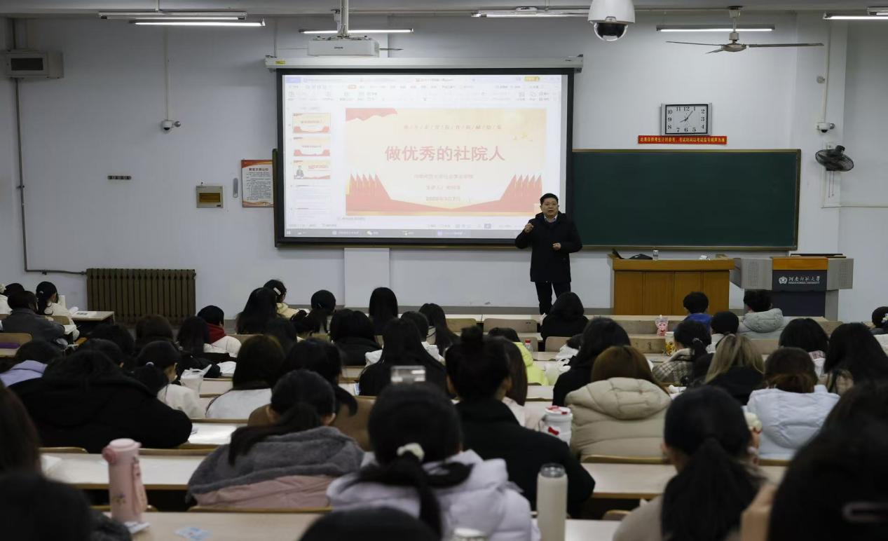 3月7日上午,社会事业学院在新554教学楼开展2025年春季开学思政第一课”,本次思政课由社会事业学院副院长宋树伟主讲,2024级本科生参加。