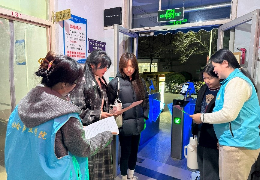 楼管会结合学生需求和社区实际,创新宣传形式,在楼宇入口处设置安全知识宣传点,通过发放《社区安全倡议书》,向学生普及用电规范、防盗反诈等知识;同时分组深入宿舍进行讲解,实现安全教育全覆盖。“宣讲员用真实案例解释安全规定,让我们真正理解规则背后的意义。”一名参与学生表示。