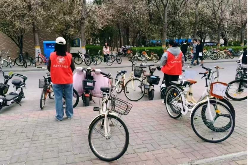 上午11点,完成卫生清洁任务的部分志愿者,又马不停蹄地投身到车辆秩序维持工作中。在宿舍楼周边停车区域,他们忙碌的身影格外显眼。志愿者们引导同学们有序停放车辆,仔细规范整理乱停乱放的车辆,还耐心地向同学们宣传文明停车的重要性,倡导大家共同维护校园秩序。近两个小时里,志愿者们始终坚守岗位,让停车区域的车辆停放得整齐有序。