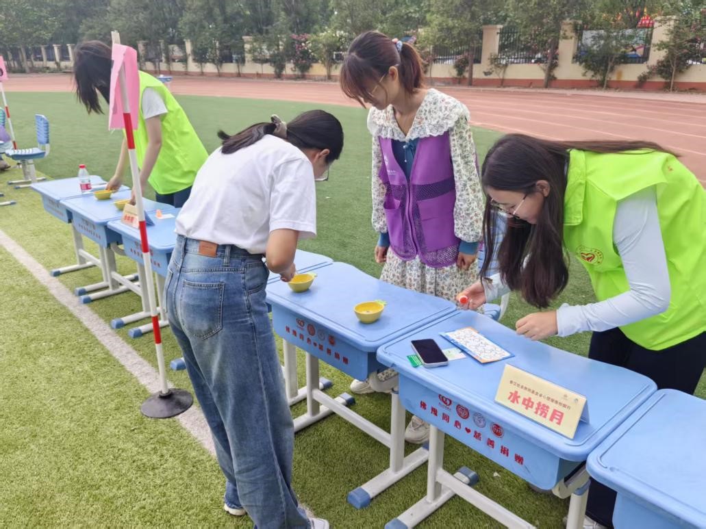 在此次活动中,社会事业学院携手新乡市教育局与新乡市青少年活动中心,构建起深度联动的“校地协同”育人机制,特别安排学院实习生担任校地沟通的“桥梁纽带”。志愿者团队于筹备初期便深度介入需求调研工作,精准把握青少年心理发展特质,匠心打造“心理集市闯关”十二大主题互动区,将心理赋能巧妙融入趣味盎然的游戏体验之中。在“手脚大冒险”环节,参与者通过肢体协调挑战锤炼抗压能力;“同心运球”项目则依托团队协作机制,提升青少年沟通协作能力;“意志大考验”借助趾压板跳绳等创意形式,磨砺心理韧性。活动现场,志愿者化身青少年成长伙伴,以沉浸式互动方式融入游戏场景,通过情境化引导激发参与者的深度思考,在欢声笑语中实现知识启迪与心灵成长的双重突破。这一实践创新不仅深度融合了“五育并举”教育理念中“以劳健心”与“以智启心”的育人内核,更开创了“社工专业介入心理教育”的实践范式,为青少年心理健康教育工作提供了可复制、可推广的创新样本。