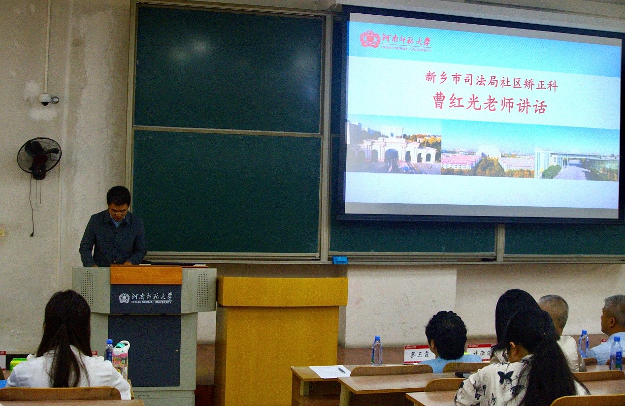 梁存良应邀首先发言。他强调实践教学环节是连接理论知识与实践能力的重要纽带,是把毕业论文写在祖国大地上的关键桥梁。他勉励同学们要做一个胸怀“国之大者”,并对实习基地深度参与实践教学环节和实践型人才培养表示衷心感谢。新乡市司法局社区矫正科科长曹红光作为实习单位代表上台发言。他对同学们在实习期间展现出的积极态度和出色表现给予了高度赞扬,同时,他也表达了对未来与学院深化合作的期待,希望在人才培养和社会服务等方面与学院携手共进,共同开创更加美好的未来。