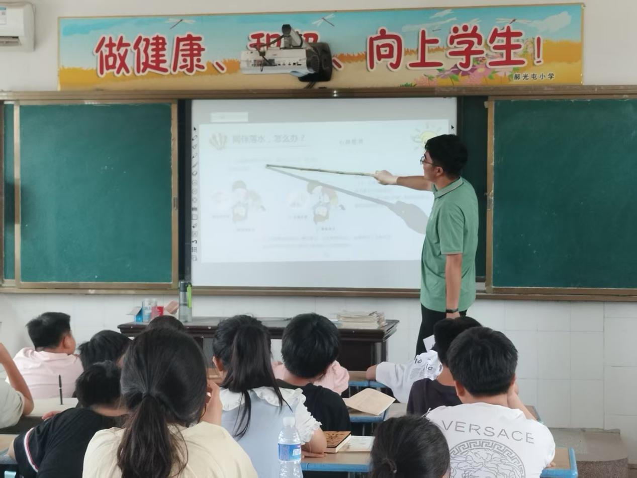 暑期是溺水事故的高发期,针对这一安全隐患,实践队员精心设计防溺水教育课程。课堂上,队员们结合当地河流、水塘实际案例,用通俗易懂的语言向孩子们讲解溺水的严重危害,重点强调“六不一会”原则以及基本的自护、自救方法。为了让安全知识真正入脑入心,队员们通过情景模拟、互动问答等形式,带领孩子们学习简单施救动作,同时反复强调“未成年人不可盲目下水救人”的安全底线。