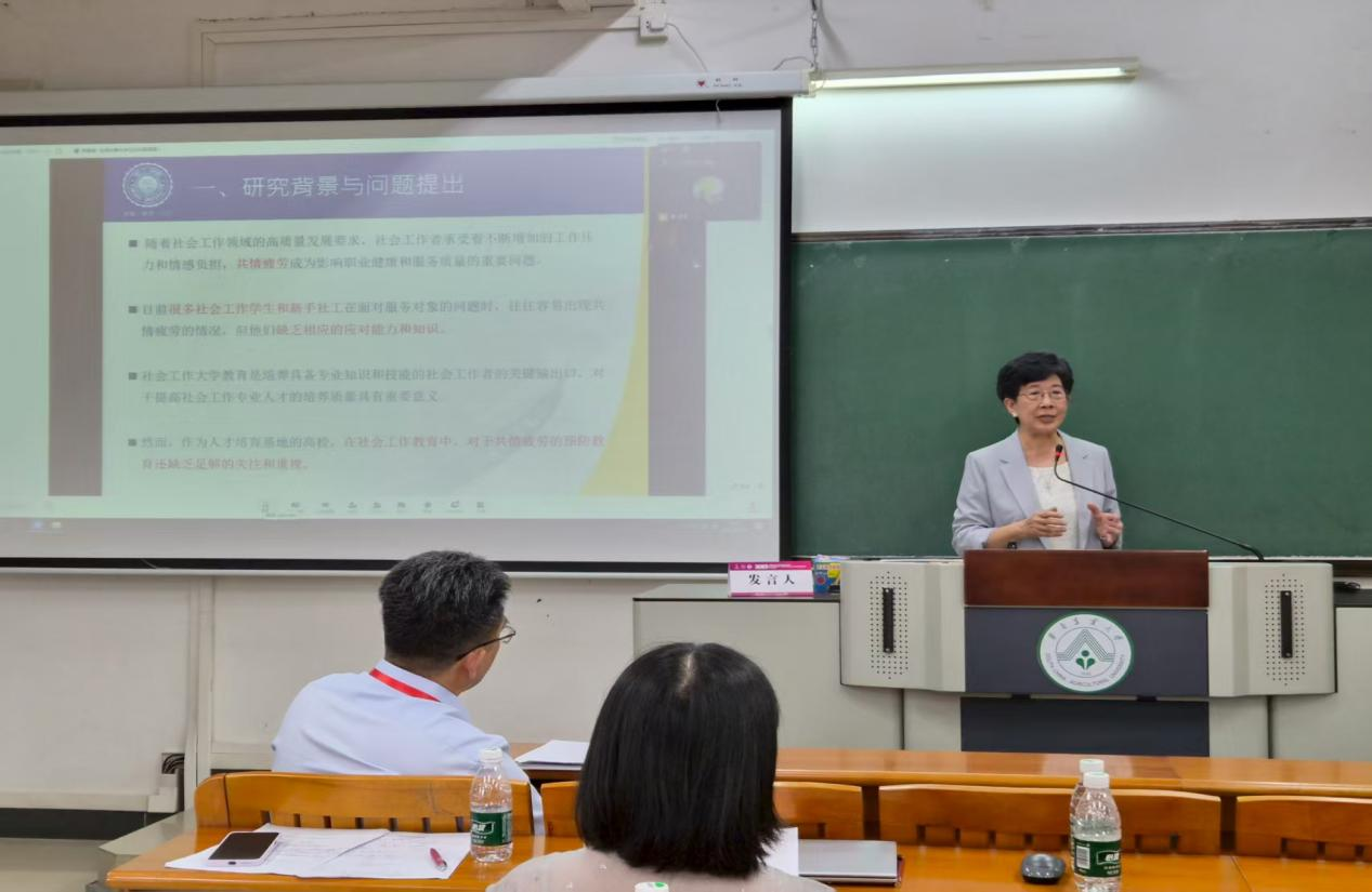 阮曾媛琪教授在发言中分享了中国社会工作教育的发展经验,既要扎根本土社会需求,又要对标国际前沿标准,并且鼓励年轻的社会工作专任教师,兼具教学的高度、学术的深度与实践的温度,不断增强学科专业素养,钻研教书育人理念,秉持助人自助精神,争做新时代厚植家国情怀、涵养进取品格的有为教师!
