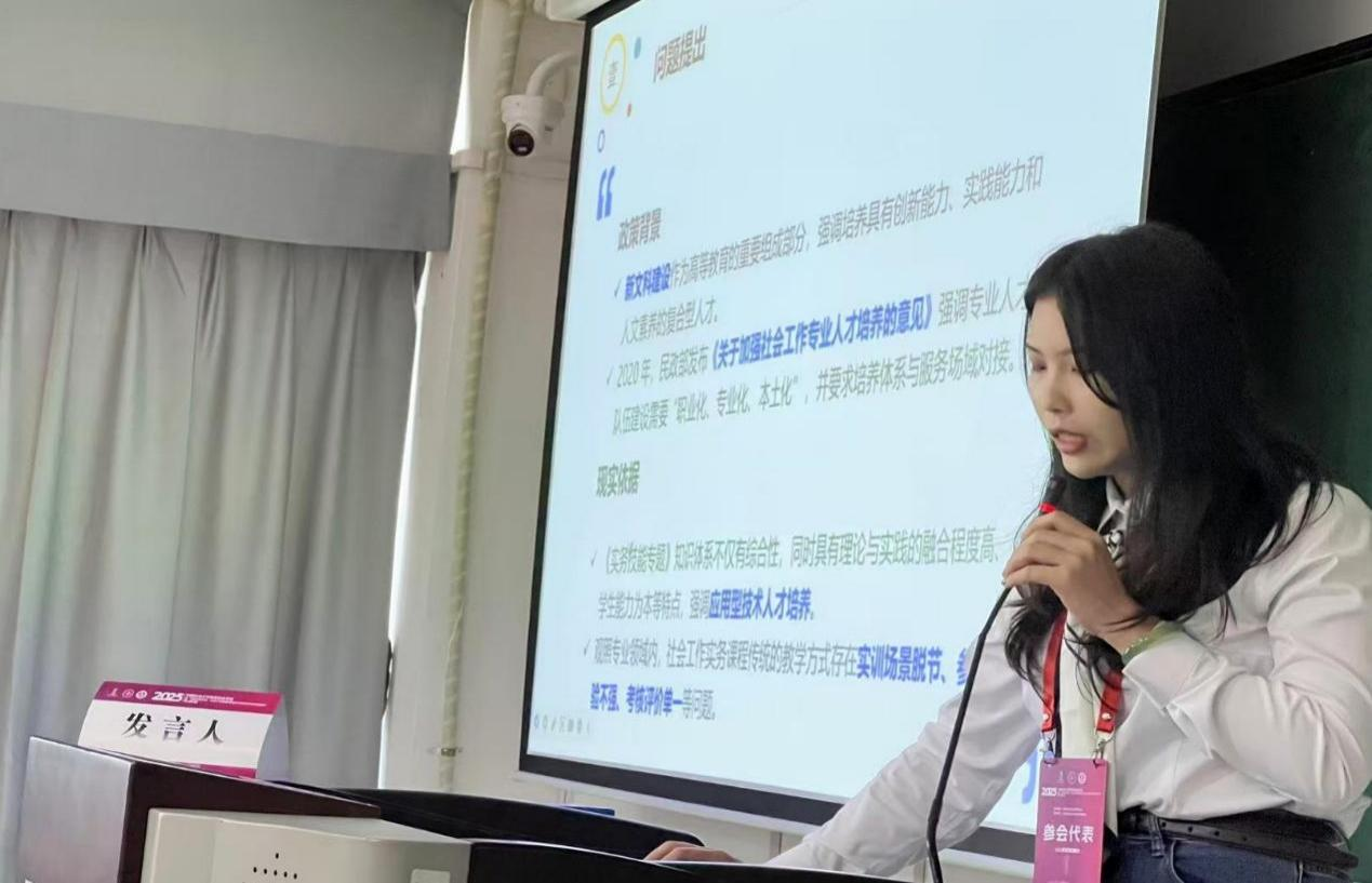 三亚学院吴家丽讲师作《破局与赋能:社会工作实务技能“四阶式”教学创新探究》主题发言。吴老师针对课程中长期存在的“技能掌握浅显、实训场景脱节、学生参与度低、考核方式单一”等痛点问题,提供了系统性构建“知识深化→技能示范→情景模拟→进阶实践”的四阶递进路径,重构出“教、学、练、评”的完整教学链条,推动知识、能力、价值三维目标的深度融合。