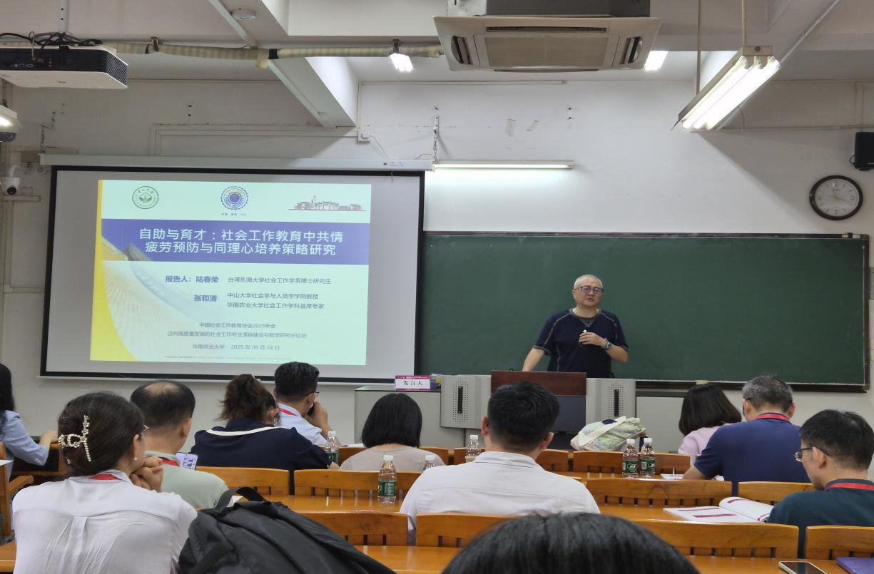8月23日至24日,中国社会工作教育协会2025年会暨“中国式现代化、社会工作教育与社会工作自主知识体系建构”学术研讨会,在广东省广州市华南农业大学隆重召开。为积极回应社会工作教育领域的发展需求,推动课程建设、教学方法创新、教学质量提升,中国社会工作教育协会社会工作专业课程建设与教学研究专委会与伟德官网下载苹果版社会事业学院联合承办了“迈向高质量发展的社会工作专业课程建设与教学研究”分论坛。本次论坛分为开幕式、平行论坛、教学研究经验分享等环节,汇聚了来自全国各高校的50余位专家学者,共同探讨社会工作教育领域的前沿趋势、现实挑战和发展机遇等议题。