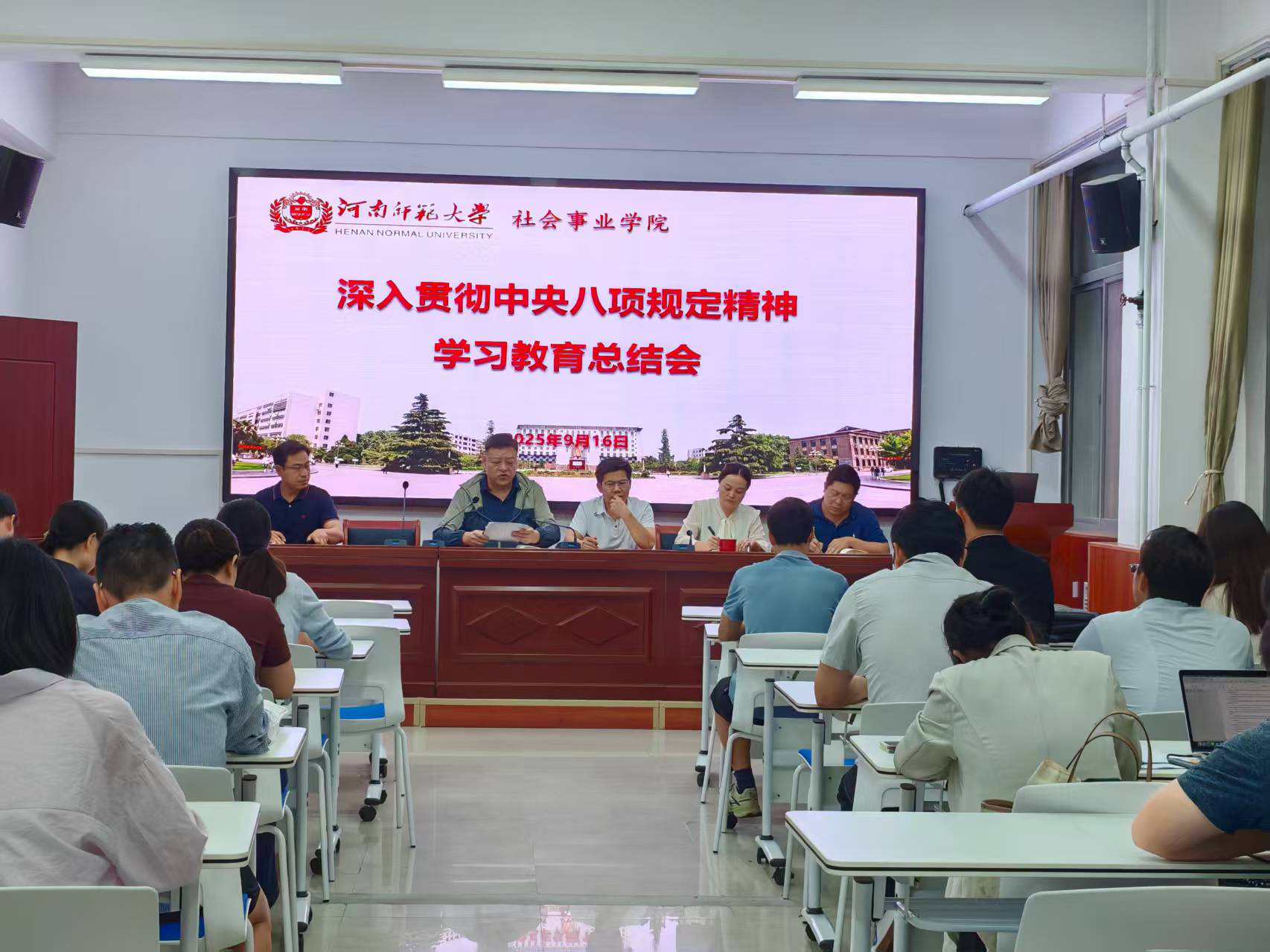 9月16日下午,社会事业学院在学院一楼报告厅召开深入贯彻中央八项规定精神学习教育总结会。社会事业学院领导班子、科级干部、党支部书记等参加会议。会议由学院党委书记张向东主持。
