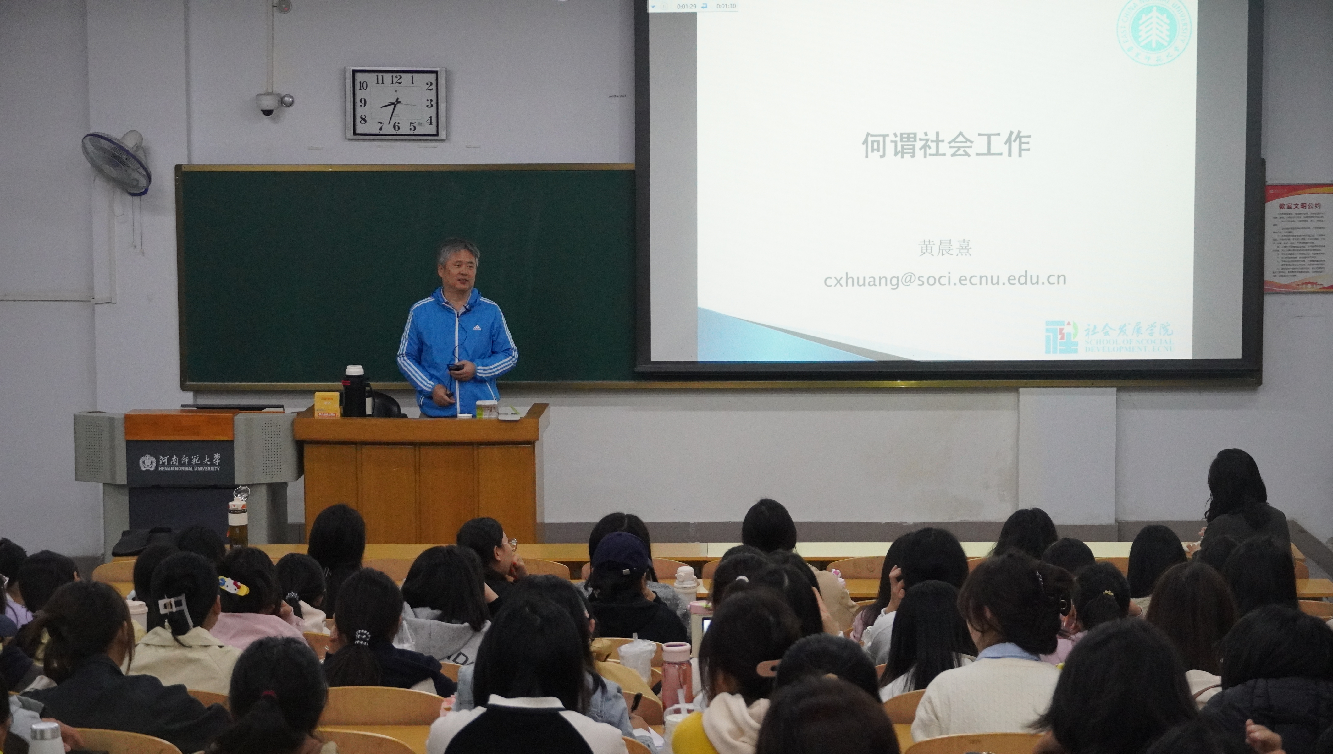 10月12日上午,华东师范大学教授、博士生导师黄晨熹应邀于新554楼 107教室为社会学院2025级新生带来题为“何谓社会学”的专题讲座。本次讲座由副院长陈妍娇主持,2025级全体新生参加,共同探寻社会工作的学科魅力与职业价值。