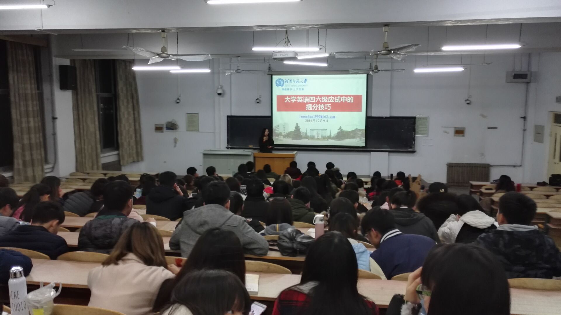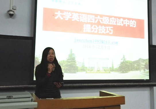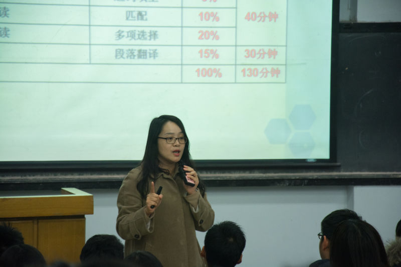 辅导会中,刘老师从英语四、六级考试试卷的构成、考试的时间分配等方面为同学们做了详细的介绍和讲解,向同学们传授了英语四、六级的备考技巧,她从自己总结的“听、写、译”三个方面依次讲解答题方法,同学们认真倾听,记录老师讲解的重点。就听力部分而言,刘老师指出要抓住新闻类听力的特点,注意新闻的六要素;同时,她提醒学生在练习听力时要将精听和泛听结合起来。随后,陈院长从学习动机、语言学习、自信等方面激励大家在学习英语的过程中“多听、多说、多读、多写”。对于英语四、六级的提分技巧,陈院长向同学们着重讲解了写作技巧,让在场的同学感受到英语表达的多样性和变通性,了解到如何有效提高写作能力。最后,陈院长向同学们强调,对于即将到来的四、六级和期末考试,要认真对待,诚信考试,并祝愿同学们在考试中取得好成绩,辅导会圆满结束。