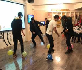新年联谊会采用集体游戏活动:击鼓传花、抢椅子、踩气球、照片墙、找朋友。整个活动气氛轻松、活泼,取得了很好的效果。