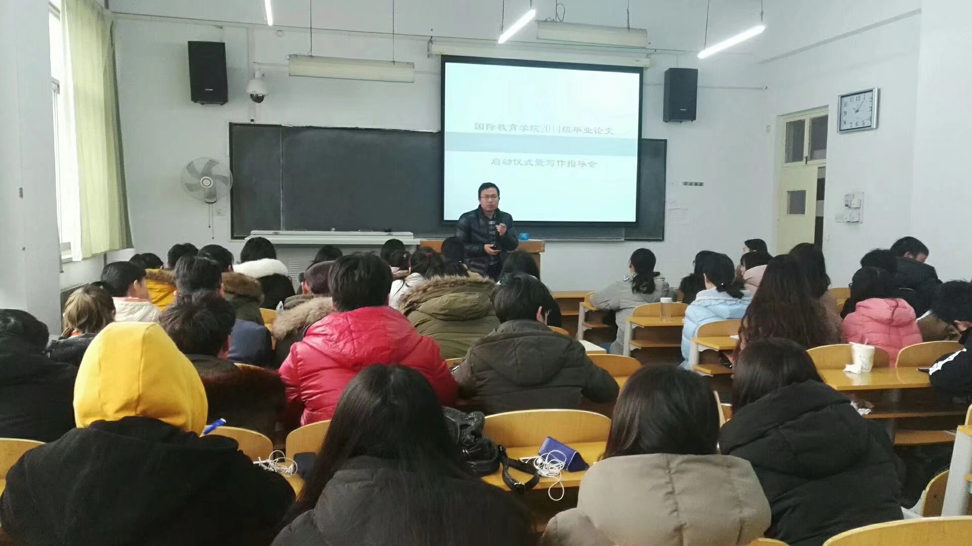 1月3日上午10:00,国际教育学院在田家炳106教室举办2014级毕业论文启动仪式暨写作指导会。副院长刘海涛出席指导会做动员报告,陶宁老师担任主讲,团委书记兼2014级辅导员韩舒主持本次指导会。