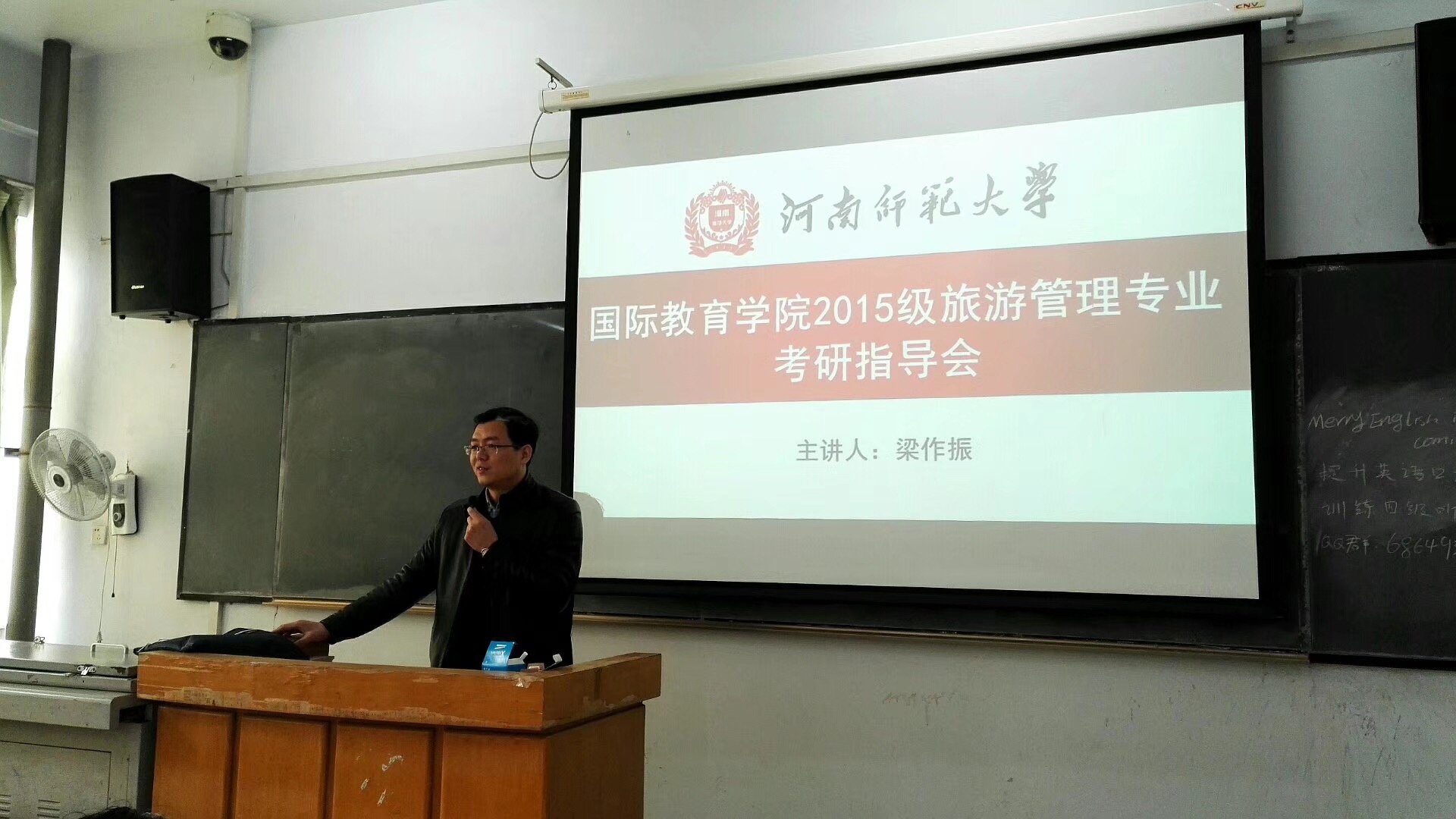 3月9日中午,国际教育学院2015级旅游管理专业考研指导会在田家炳305教室召开,我院特邀考研指导专家、伟德官网下载苹果版社会事业学院副书记梁作振老师为大家作考研指导、2015级辅导员韩舒老师携国际教育学院2015级全体学生参加此次指导会。