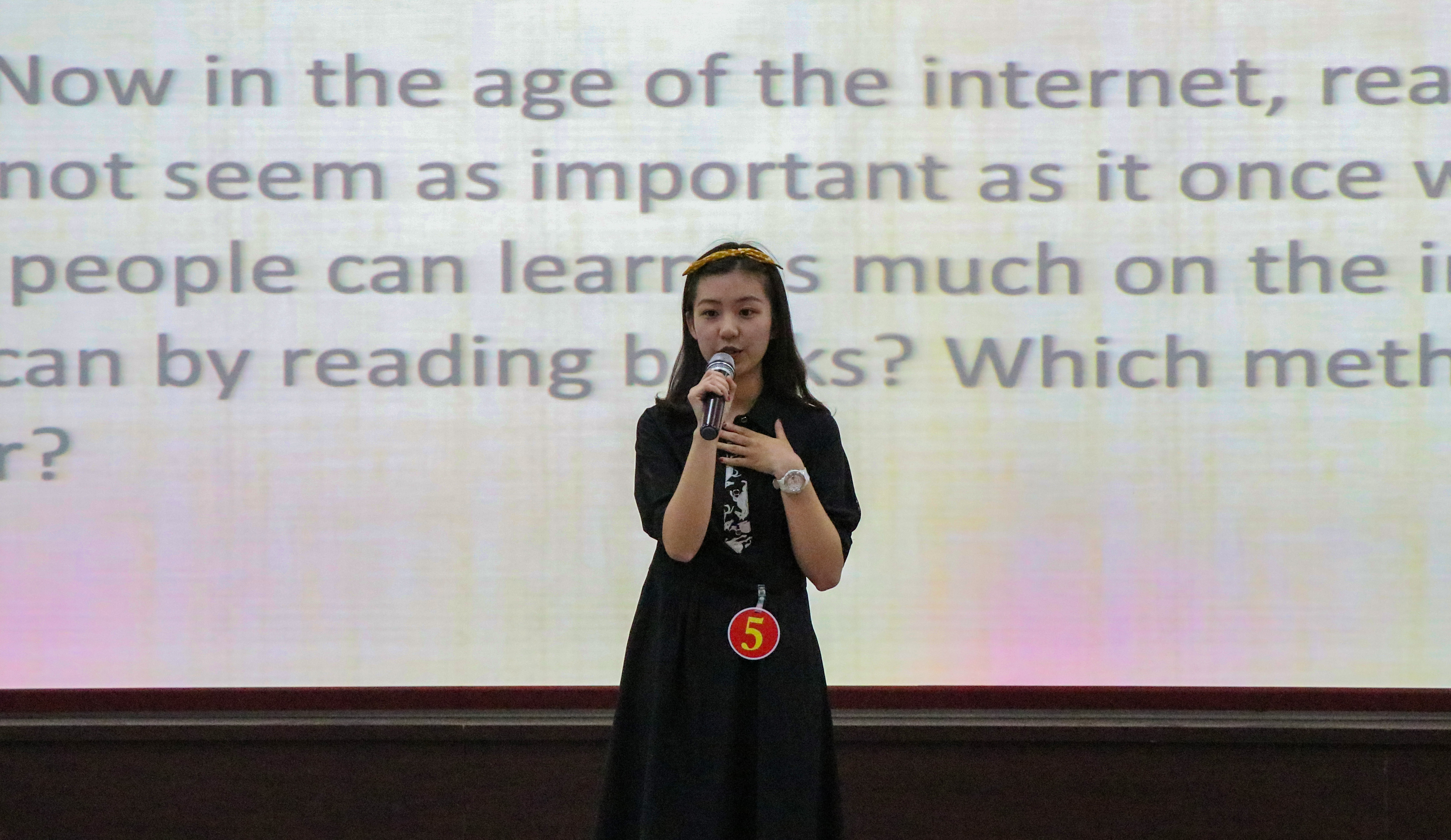 本场决赛分为非专业英文组和专业英文组两个部分,主题演讲与即兴演讲两个环节。主题演讲环节,经过精心准备的选手们紧扣主题,直抒胸臆,尽情发挥。他们或青春灵动、或娓娓道来、或激情奔放,从不同切面阐述了自己的感悟、思考和憧憬,充分展示了我校学生积极向上的精神风貌,弘扬了校园青春正能量;即兴演讲环节,在短暂的准备后,18位选手依次以即兴脱稿演讲的形式对自己抽到的题目进行表述,展现了他们不俗的思辨能力和语言功底。富有感染力的神态动作、声情并茂的语言和严谨有序的逻辑表达引得阵阵掌声。比赛结束后,评委老师对各位的选手进行了点评,并对大家的出色表现表示祝贺。