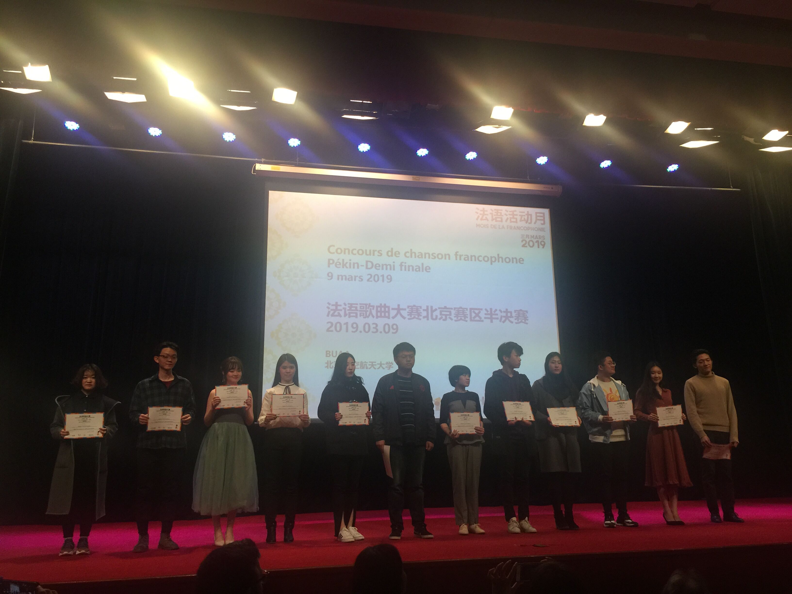3月9日,2019年全国法语歌曲大赛北京赛区半决赛在北京航空航天大学落下帷幕,我校首届中法合作办学项目2017级法语专业学生魏华欣斩获第二名。