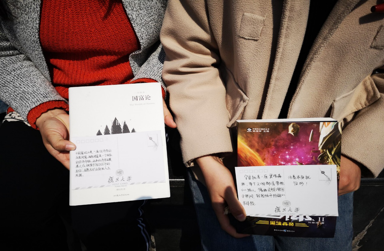 活动伊始,班长程嘉汶给予同学们热切的期许:“希望大家好读书,做一个尚智、勤进的人;多读书,做一个明理、博取的国教人;读好书,做一个诚信、上进的人”,希望同学们在读书中寻找快乐,在知识中讲求诚信。随即,在班委的精心组织下,同学们纷纷在明信片上写下自己的读书心得和推荐理由,并将图书摆放在中心花园内,等待下一个喜爱图书的同学前来探索。这种自由、随机且愉悦的分享方式,大大提高了同学们的热情,活动中充满了温情与墨香。