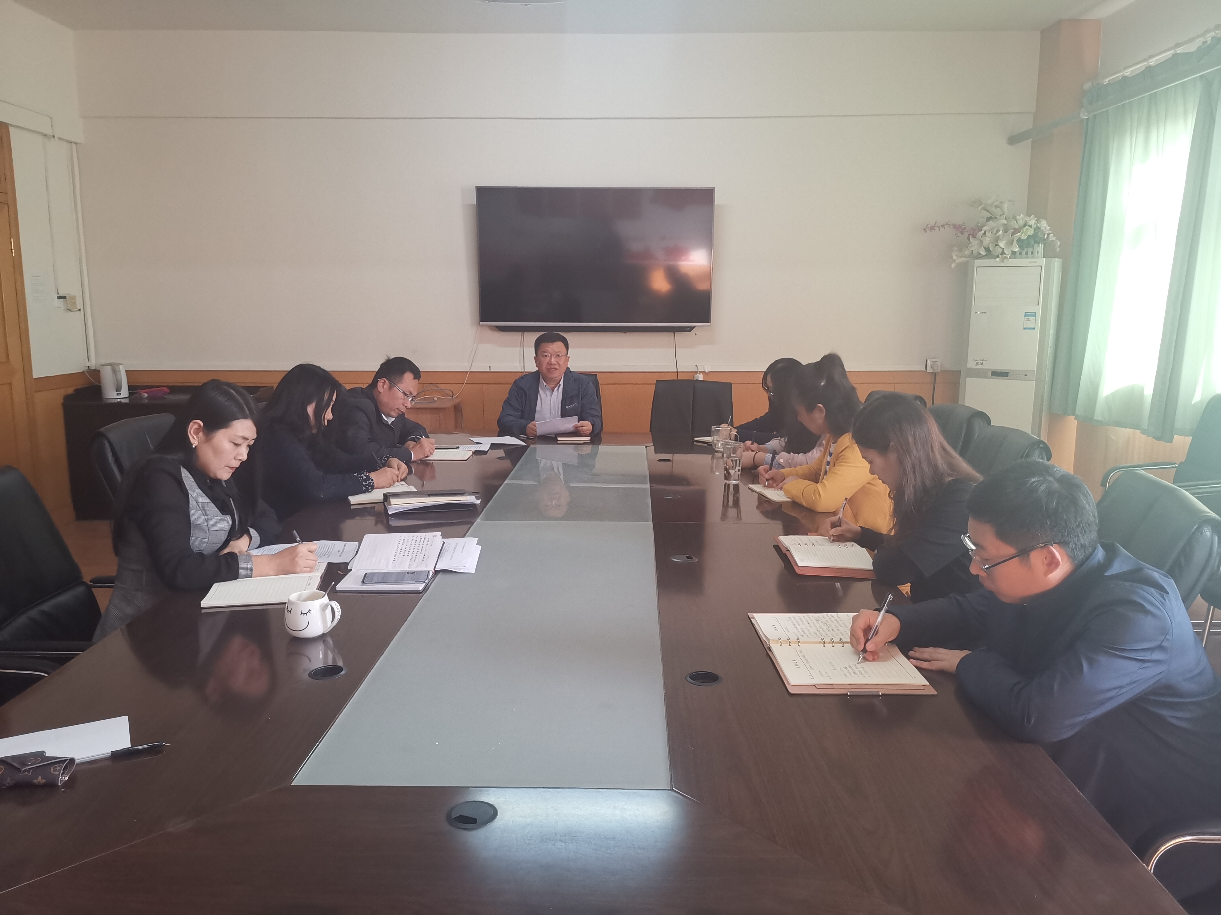 2019年10月8日,国际教育学院在五楼会议室开展“不忘初心,牢记使命”主题党课活动,主讲人为党总支书记李秋发。国际教育学院全体教工党支部成员聆听党课。