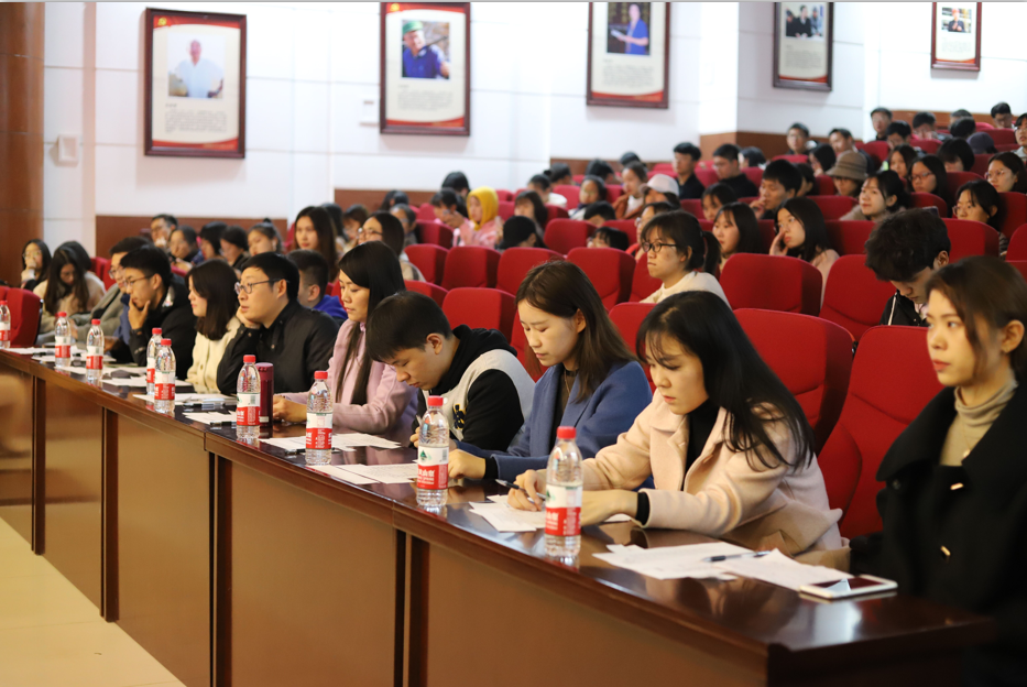 旋律扬帆,歌颂青春。为了促进国际教育学院中外合作办学学生感受音乐魅力,提升人文素养,展示青年学子风采,营造良好的外语学习氛围,11月17日下午,国际教育学院在思政平台顺利举办了第二届“国际青年汇”外文歌曲大赛。国际教育学院党总支副书记白丽,团委书记韩舒,2017级辅导员武光辉,2018级辅导员孔若阳,各年级兼职辅导员和部分学院学生会主席出席并担任评委,学院200余名同学到场观赛。