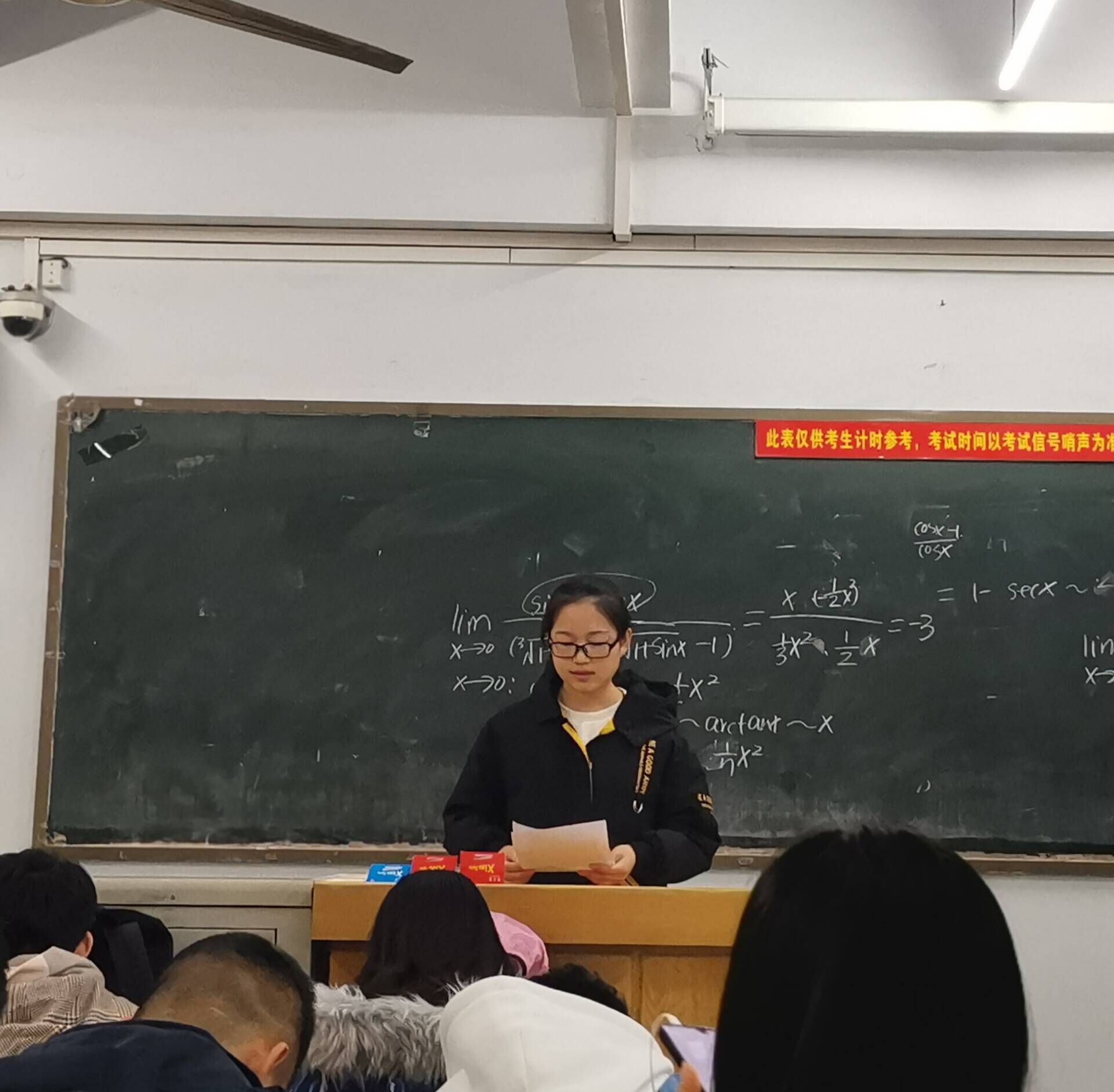 副班主任王春燕担任本次总结会主持人。大会伊始,由2018级刘杨帆,王涵,王春燕,黄歌分别为大家讲解高数试卷和英语试卷。随后由2019级曹毓灵、宋舒欣、杨潇雨、张梦月作为成绩优异学生进行经验分享。其中,张梦月和宋舒欣针对如何学好高数进行分享,指出上课认真听课的重要性,要紧跟老师思路。杨潇雨和曹毓灵针对如何学好英语进行分享,曹毓灵向同学们建议听英文歌曲来记单词,杨潇雨以自身为例告诉同学们要利用碎片时间来学习英语。最后2018级优秀学生代表刘云鹤针对本次高数和英语出题进行分析,她指出要多看书,多总结错题并预祝大家期末考试取得优异成绩。