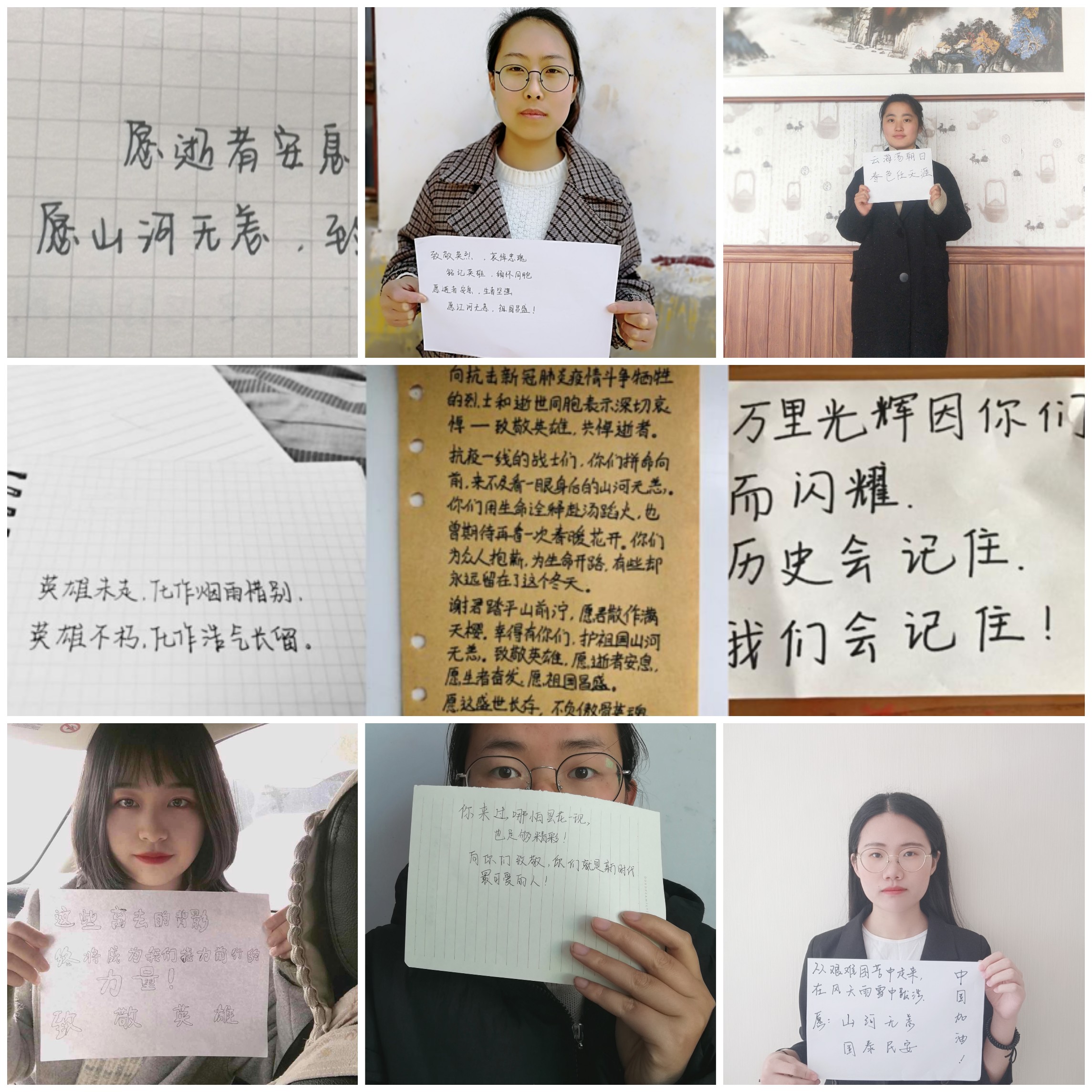 上午10时,来自全省各地的学生党支部成员在家中、屏幕前,和全国人民一起集体默哀三分钟,共同缅怀先烈、致敬英雄、表达祝福。接着,党支部成员以收看直播和网络视频的方式观看了抗“疫”英雄们的先进事迹和奉献精神,并将对烈士和逝世同胞的缅怀和祝福写在纸上,向在抗击新冠肺炎疫情斗争中牺牲的烈士和逝世的同胞表达崇高敬意和无限哀思。
