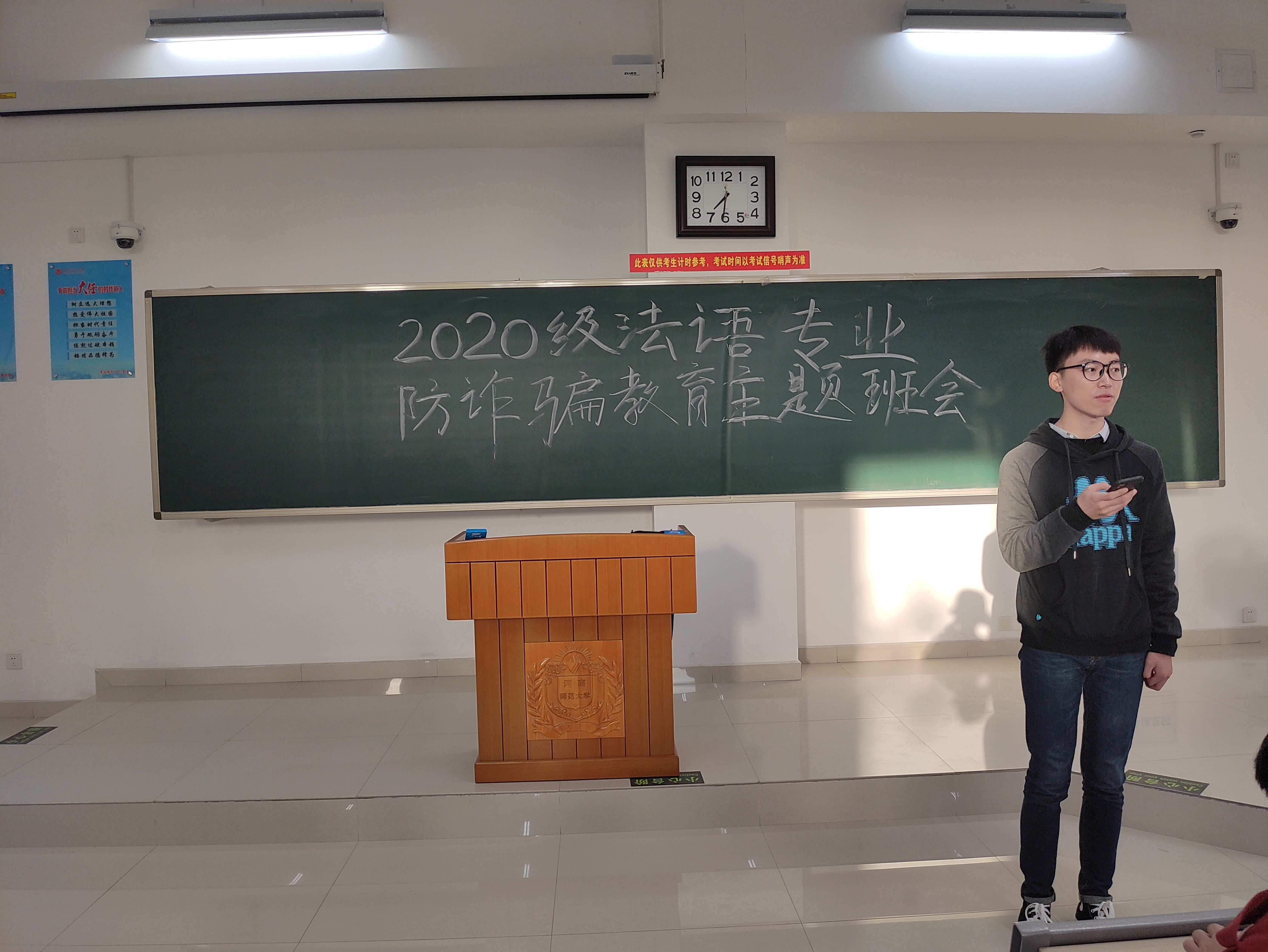 10月21日上午,为增强大学生网络安全意识,国际教育学院2020级法语专业在东区综合楼203教室开展防诈骗安全教育主题班会,此次班会由2020级兼职辅导员高源主持。