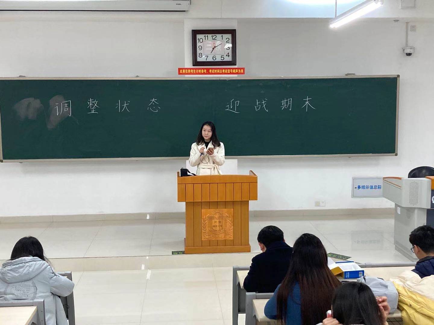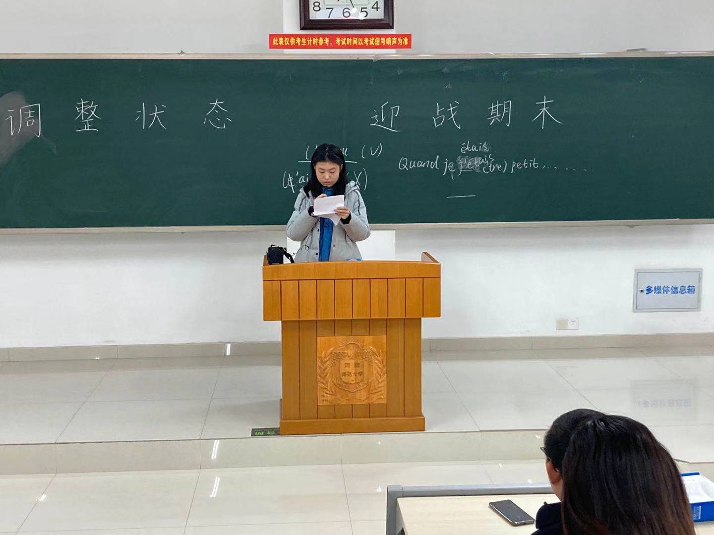 最后,2019级辅导员韩舒针对本次会议做出总结:一是希望大家在本次考试后,认真反思、扎实复习;二是要严格考勤,严明纪律。最后他以“信心“为结束词,希望大家在法语学习中不畏难、不退缩,坚定信念,迎战期末考试。